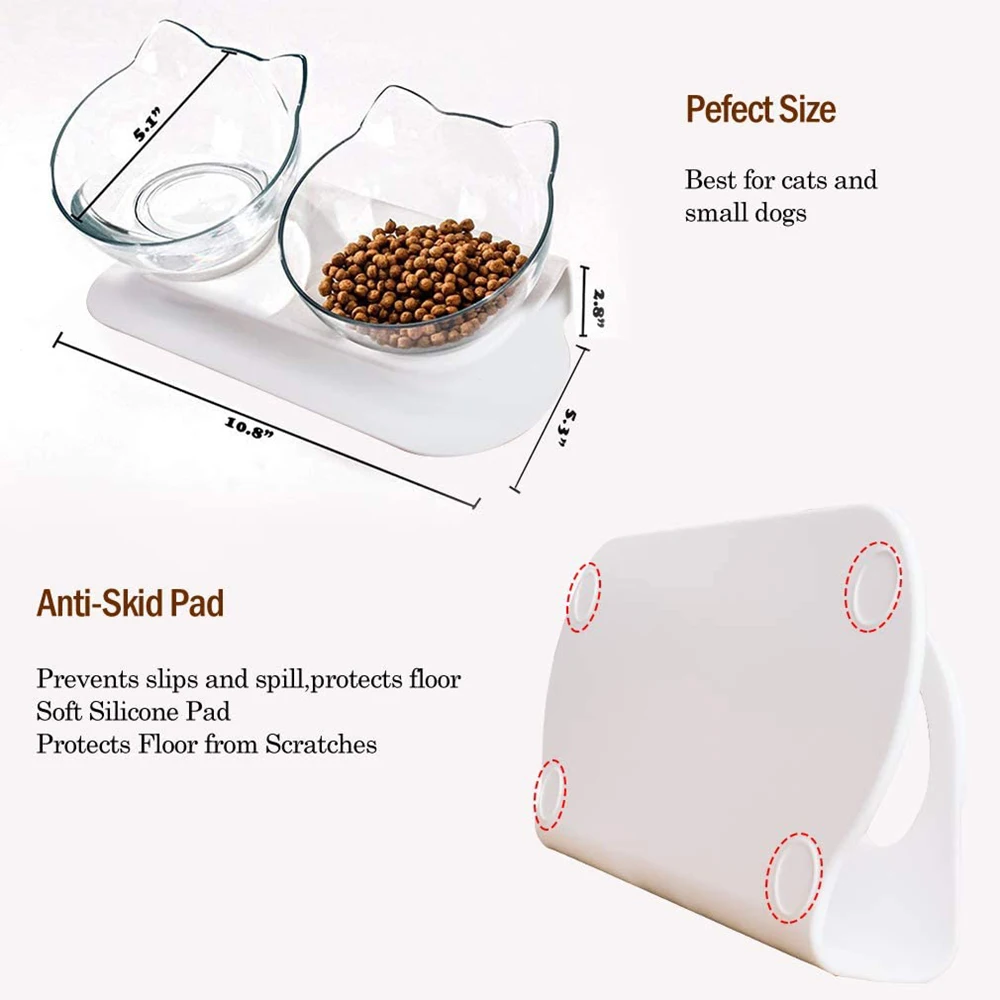 Дно имеет противоскользящую резину, которая может предотвратить скольжение и опрокидывание домашних животных во время еды, устраняя звук воздействия питомца при еде. Слегка наклонная поверхность предотвращает попадание пищи в миску для кошек.
