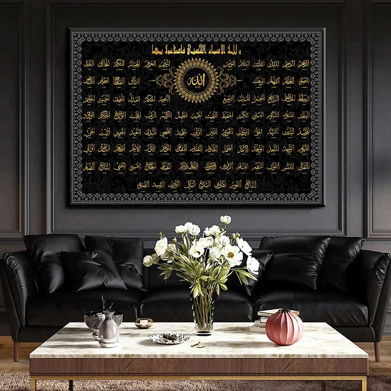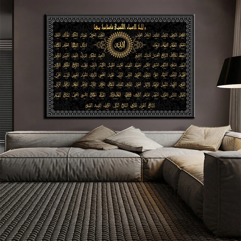 99 имена Аллаха, мусульманская Настенная картина на холсте, арабска...
