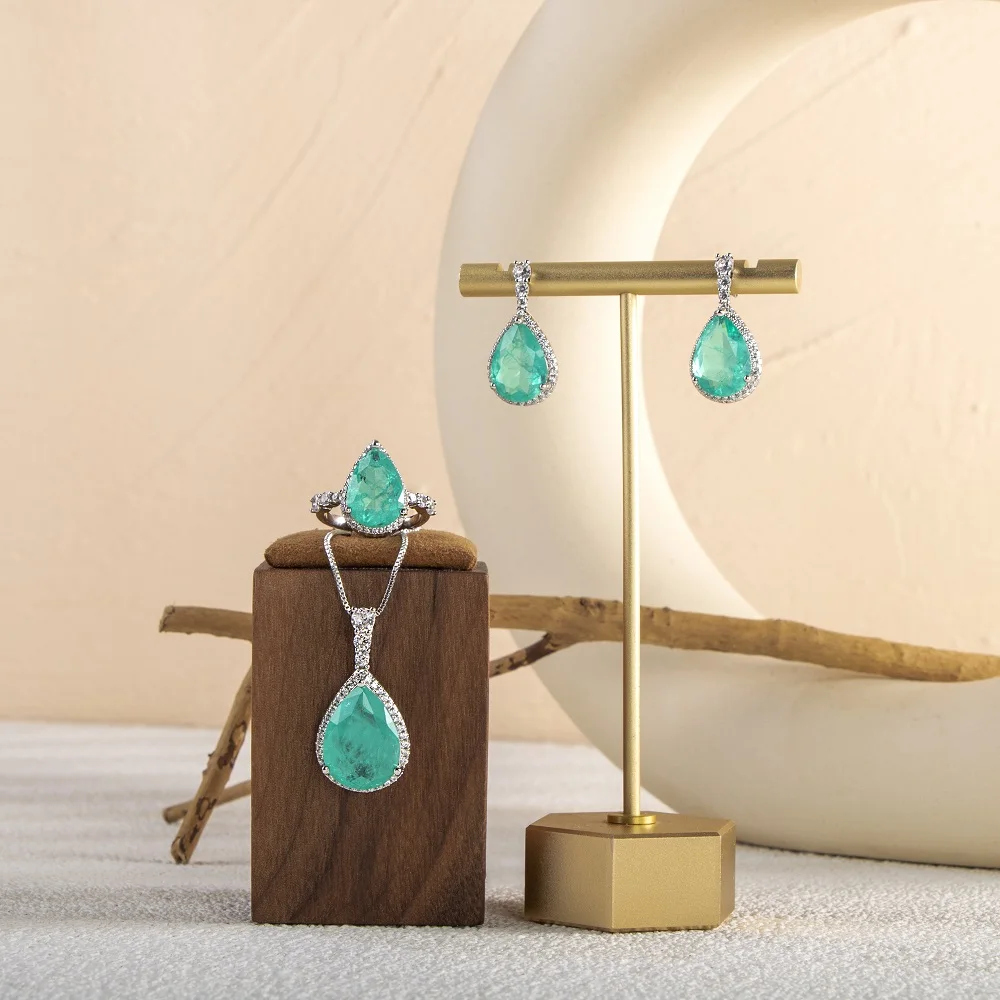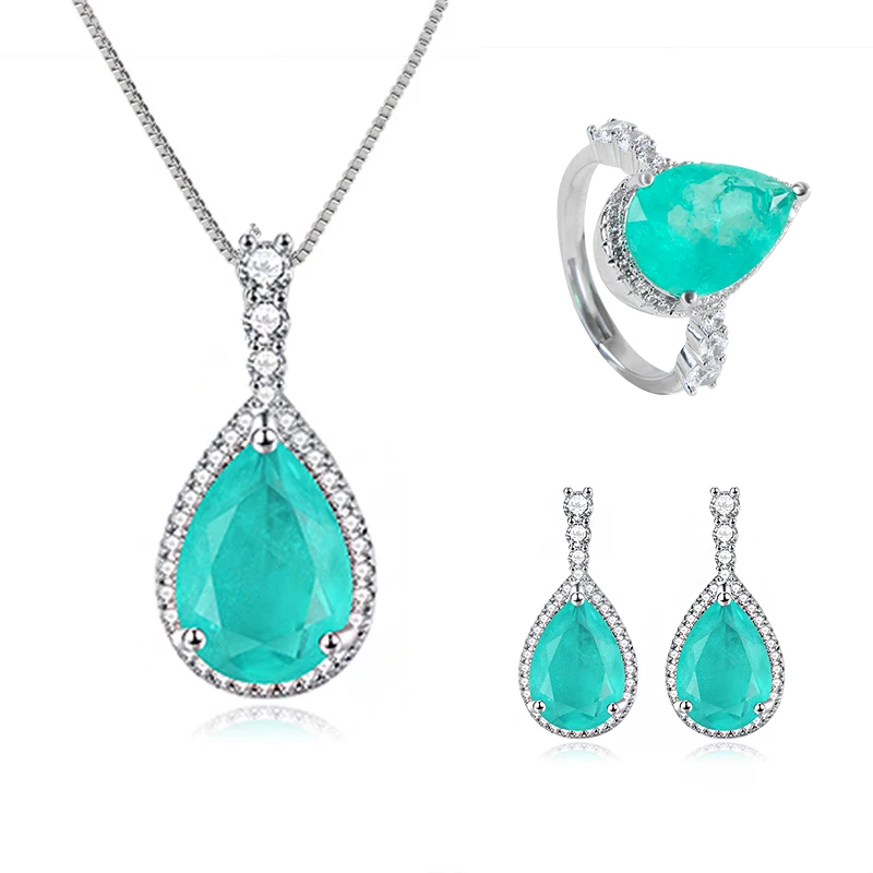 Комплект ювелирных изделий из натурального серебра 100% пробы GICA GEMA, кольца, подвески, серьги с синими драгоценными камнями Paraiba, обещают Роскошные ювелирные украшения