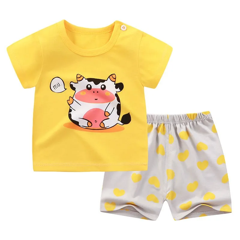 Детская одежда лето 2021 г. Новый детский костюм с короткими рукавами От 6 месяцев до 4 лет Одежда для маленьких девочек хлопковая Футболка с рисунком для мальчиков и шорты
