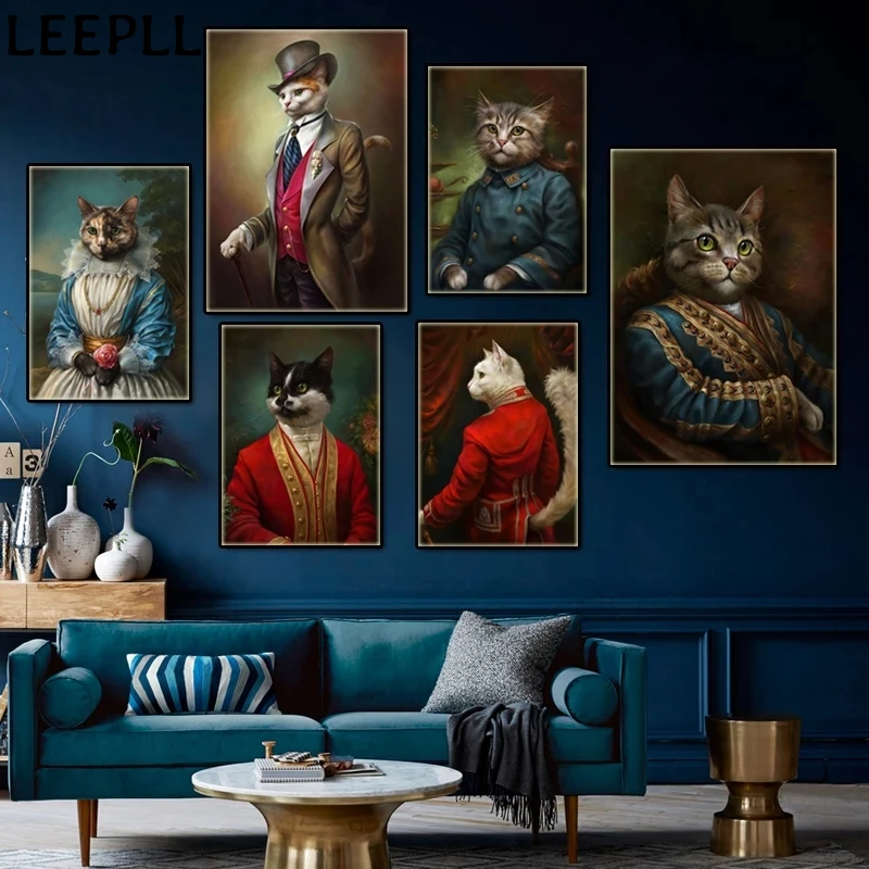 Абстрактная Картина на холсте искусство среднего возраста кот собака джентльмен картина для гостиной Искусство Печать декоративные картины
