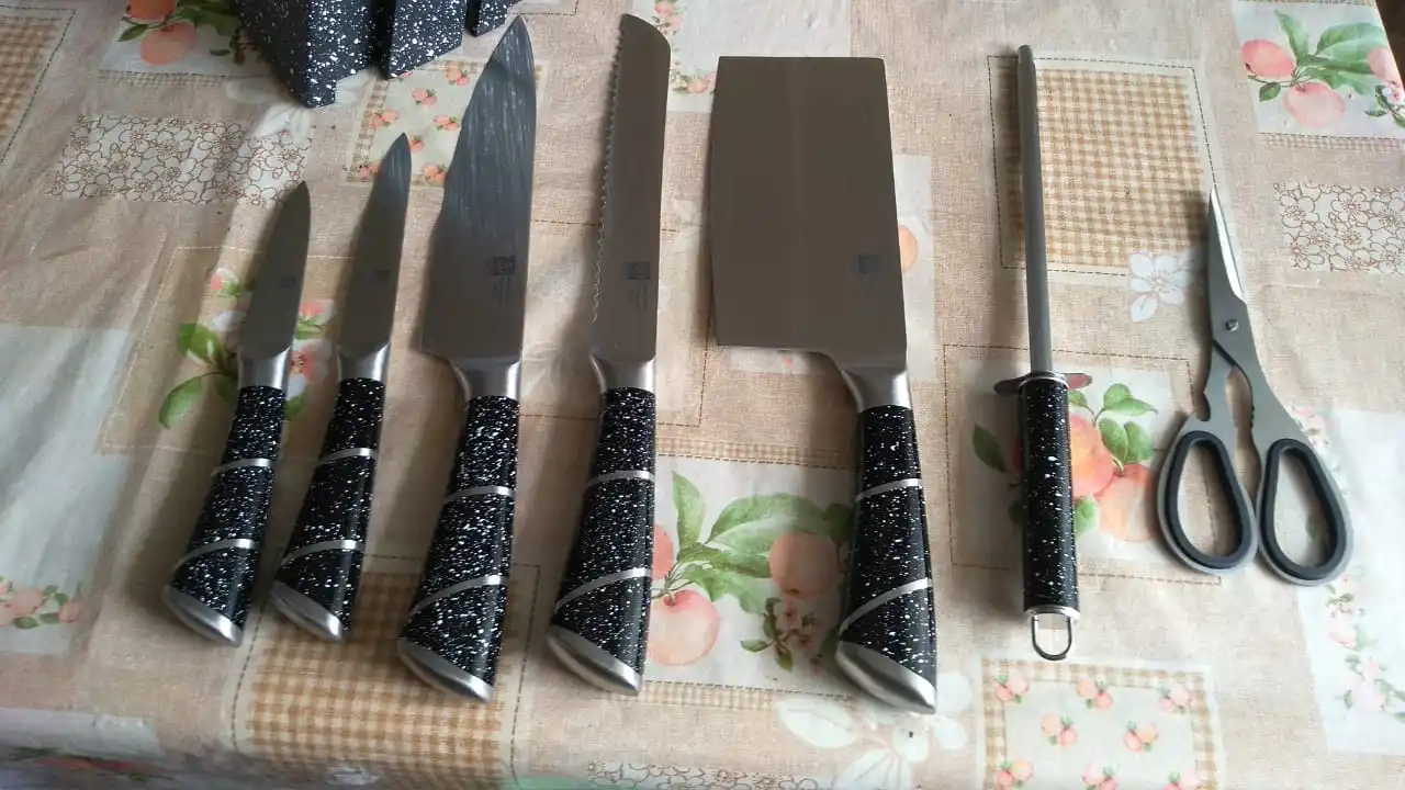 Доставка 1 неделю. Ножи среднего качества. Острые но тонковатые. Думал придётся засверлить подставку, то-бы влага не застаивалась и не было затухания. Так нет!!! Прорезы сквозные!!! Вентиляция воздуха обеспеченна! Порадовало.