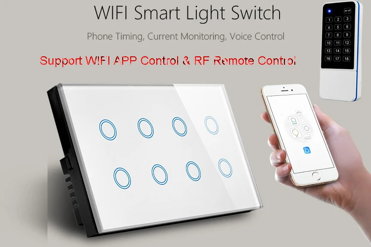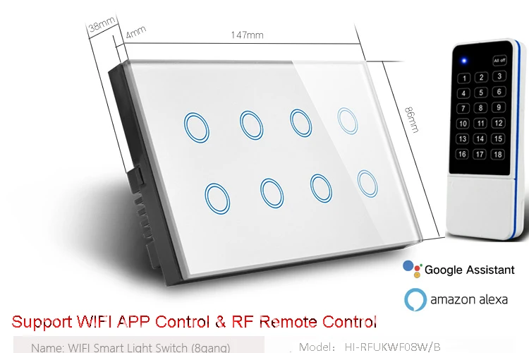 ХарактеристикиUK 8 Gang wifi switch support RF Remote control