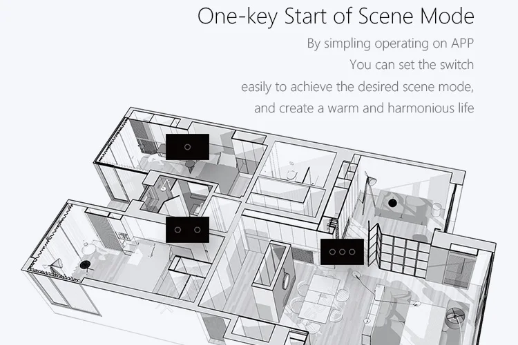 Смарт-выключатель настенный стеклянный с сенсорным экраном и поддер...