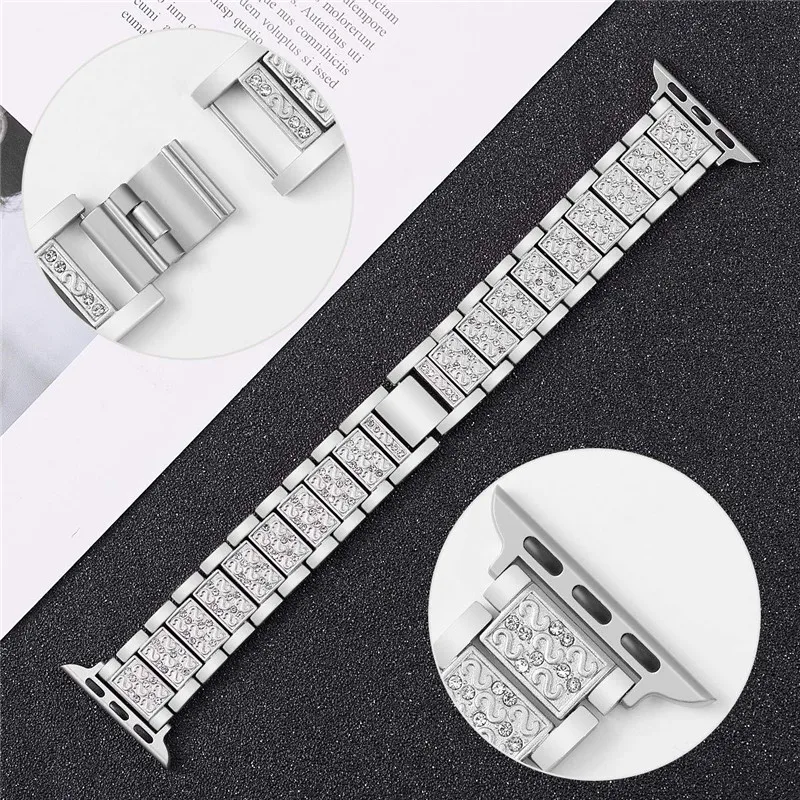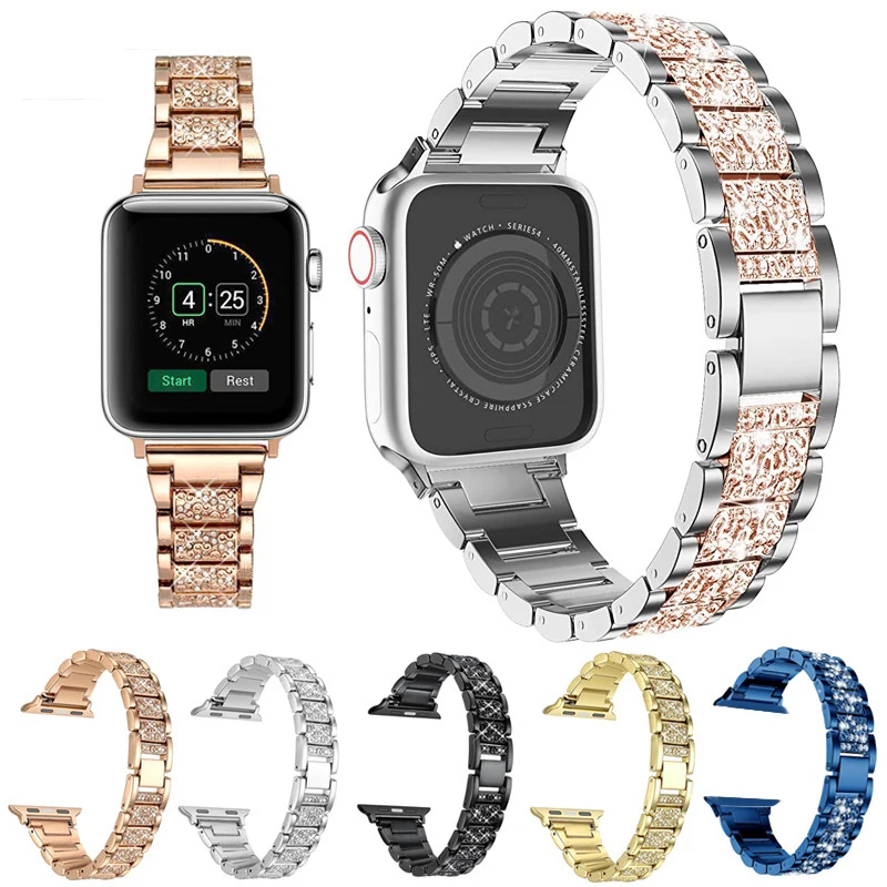 Ремешок для часов IWatch 5, 6, SE, 4, из нержавеющей стали, с бриллиантами, 44 мм, 40 мм, 42 мм, 38 мм