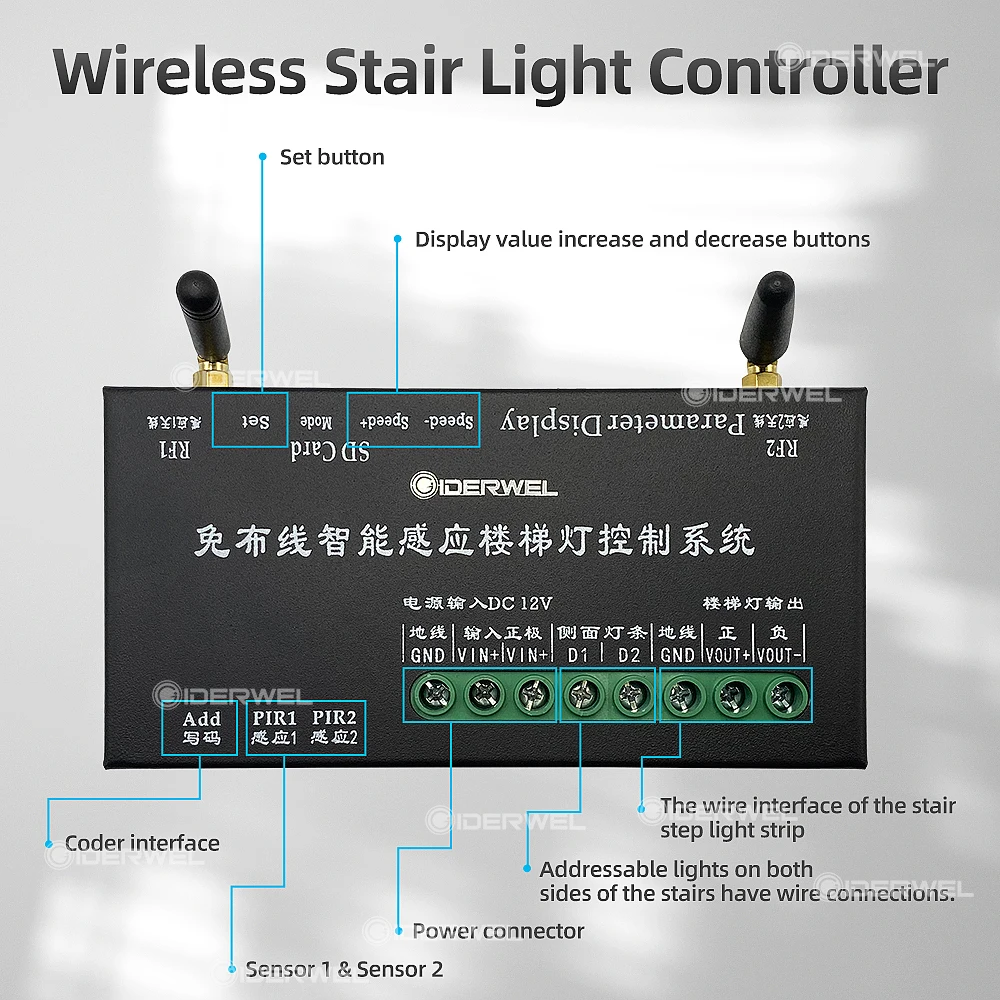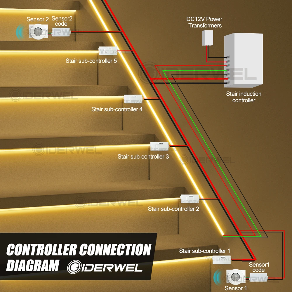 Только контроллер: 1 шт. контроллер на лестничный светильник + 2 датчика