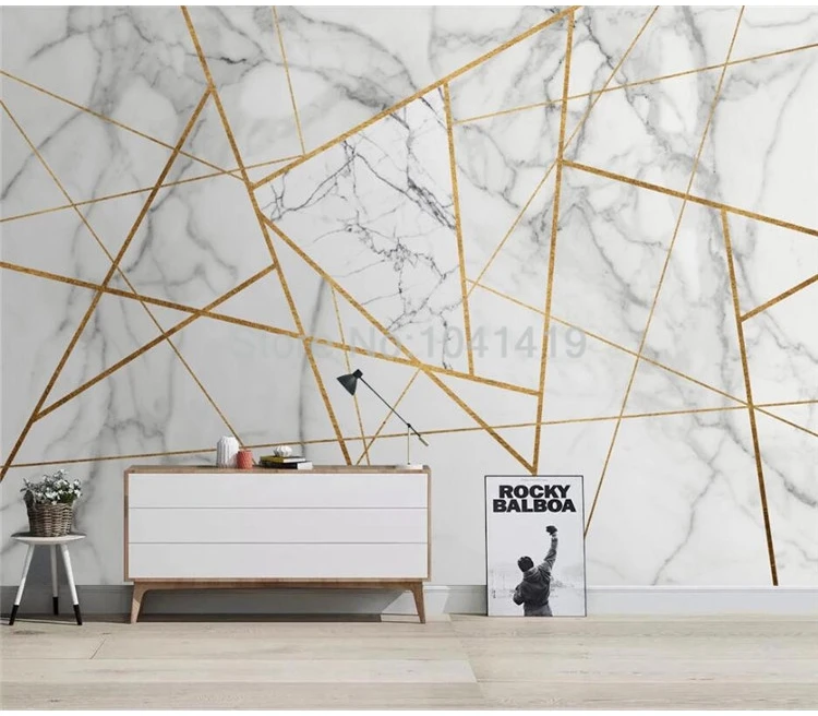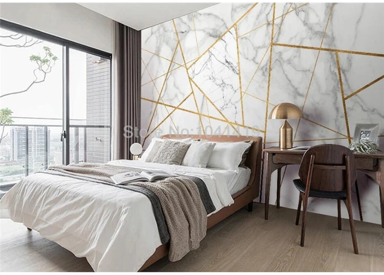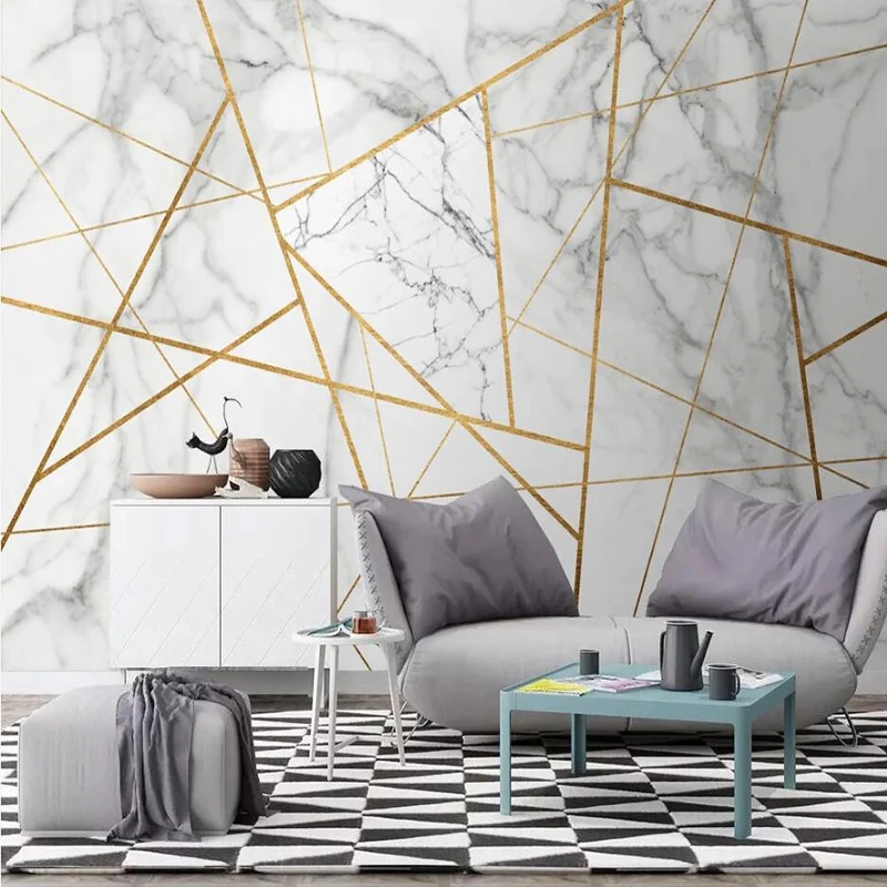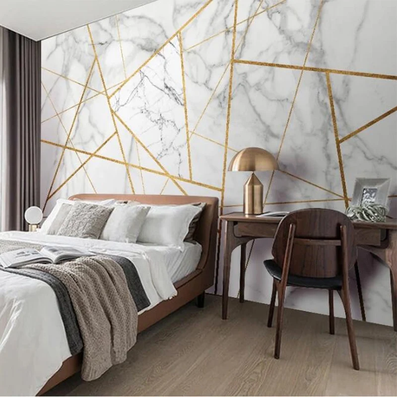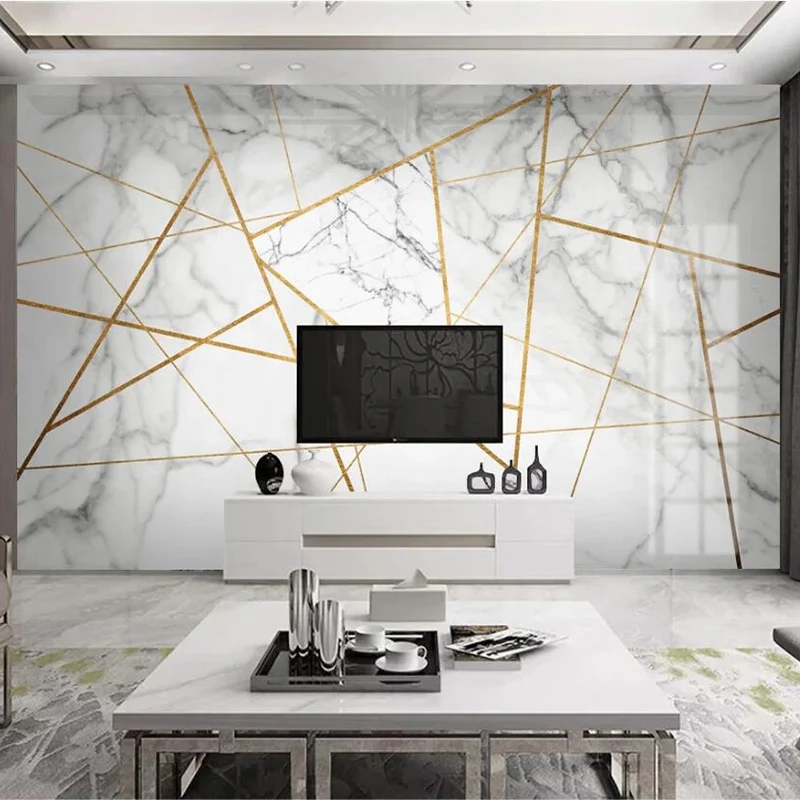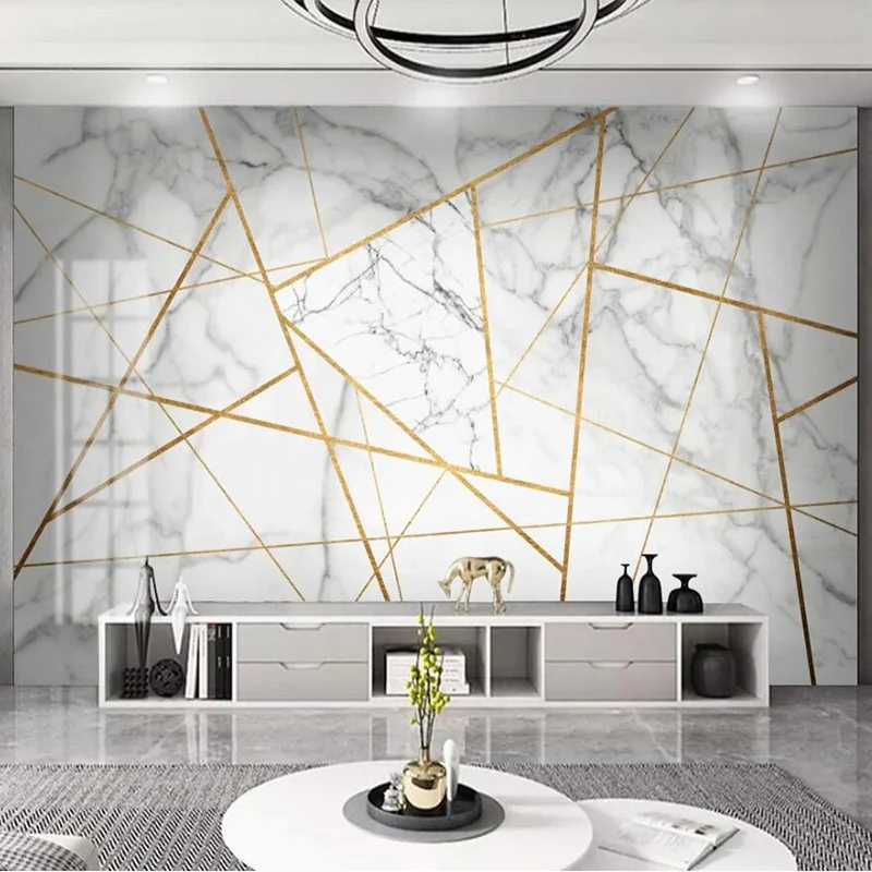 Настенные обои на заказ, современные 3D обои с геометрическим узором под мрамор, с золотой линией, Фреска для гостиной, фона за телевизором, домашний декор