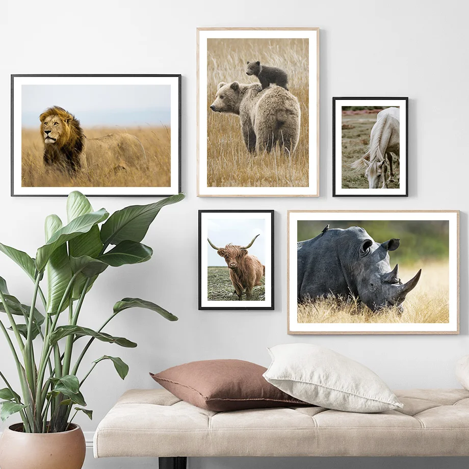 Настенная картина с изображением Льва, лошади, медведя, носорога, овец, ячменя, животных, настенные постеры и принты в скандинавском стиле для декора гостиной