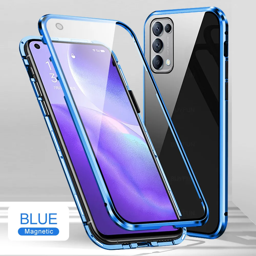 Магнитный металлический чехол-книжка на 360 для Oppo Reno5 Reno 5 5G 4G K Orro Opo, двухстороннее закаленное стекло, защитный чехол для телефона Coque