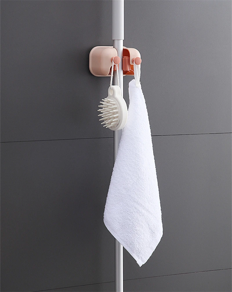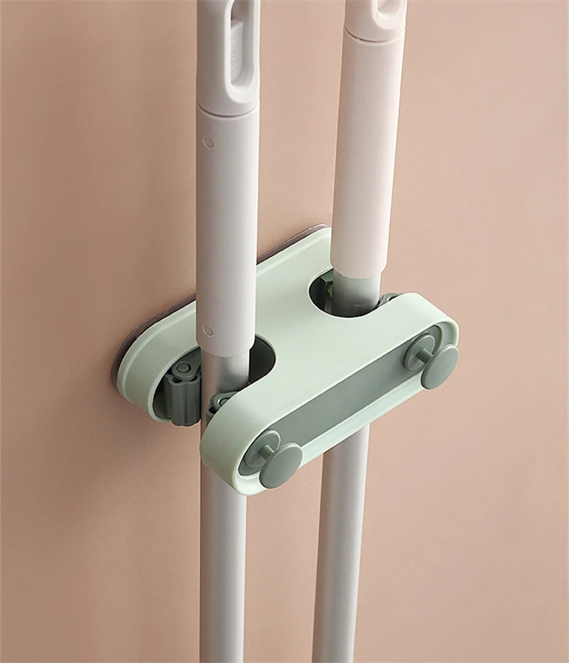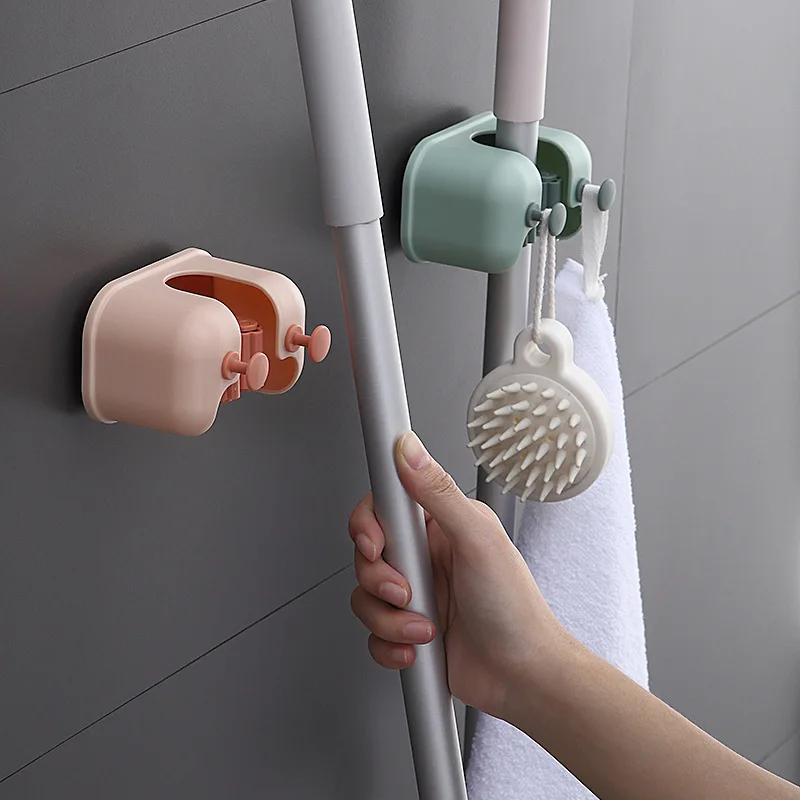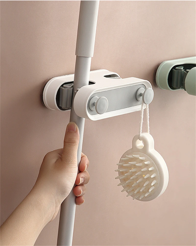 Настенный держатель для хранения швабры, органайзер без отверстий, Двойные слоты для карт, щетка, крючки для метлы, подвесная стойка, домашние инструменты для ванной и кухни