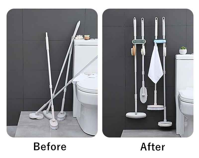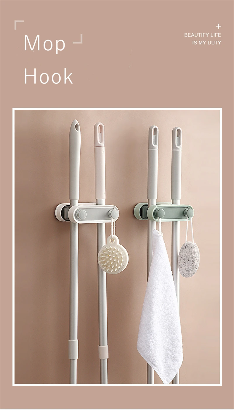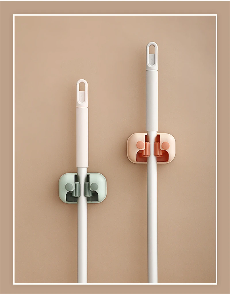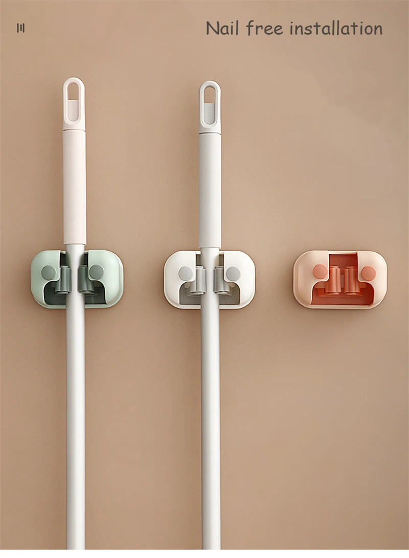 Настенный держатель для хранения швабры, органайзер без отверстий, Двойные слоты для карт, щетка, крючки для метлы, подвесная стойка, домашние инструменты для ванной и кухни
