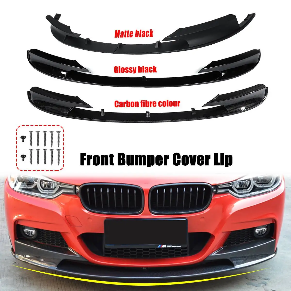1 пара накладок на передний бампер из углеродного волокначерная поверхность для губ для BMW F30 3 серии M Style 2012 2013 2014 2015 2016 2017 2018 только
