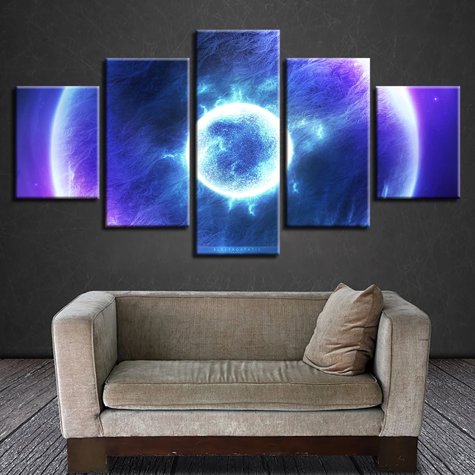 Абстрактные картины HD 5 шт., постеры с изображением Вселенной и синих планет, модульная Картина на холсте, художественный декор для стены в гостиной