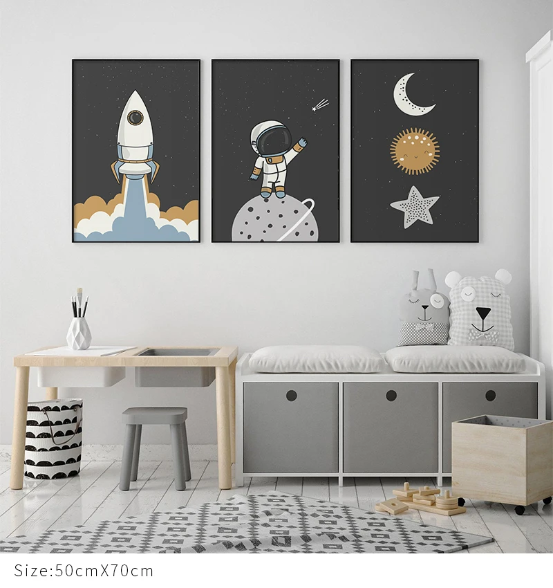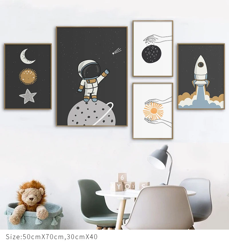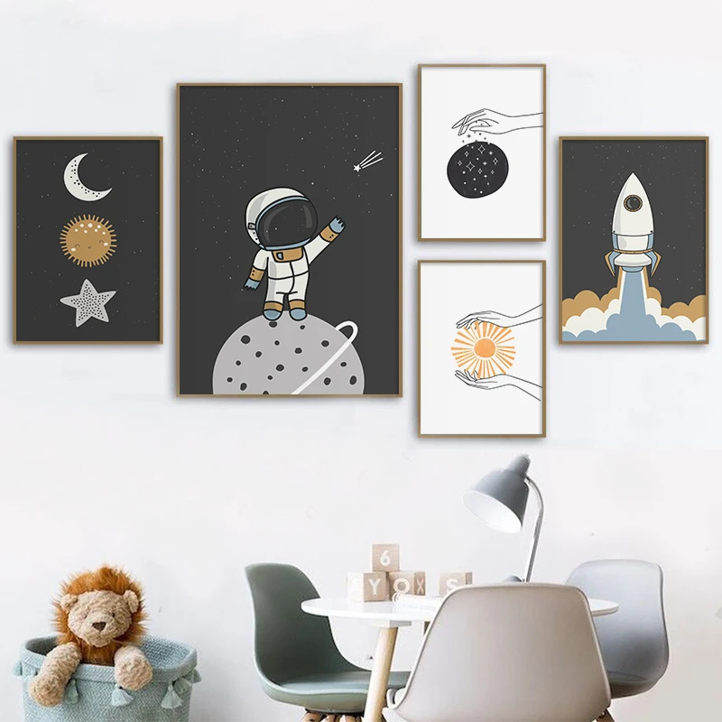 Мультяшный Космос астронавт планета ракета детская живопись на холсте постеры и принты настенные картины для украшения детской комнаты