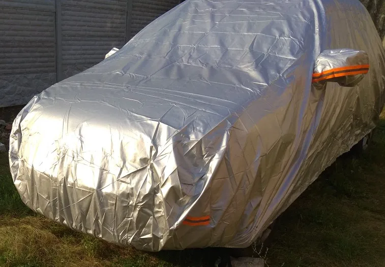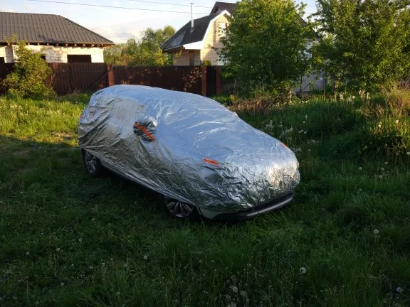 На Сандеро Степвей 2018г.в. взял 2L. Основное назначение-от солнца. Сел нормально,зеркала попали точно. Резинка внизу спереди и сзади хорошо заходит под бампер. Ремни не на колеса, а под бампер спереди и сзади на защелках. Посередине есть петли(без ремней)-можно под кузовом связать. Со змейкой вышел просчет-дверь выше, чем верх змейки, надо поднимать чехол выше для открытия двери. Не хватает горизонтальной змейки над дверью. Ткань тонковата-ночью хорошо видно индикатор сигнализации, днём в салоне светло. Ожидал более плотную. На солнце в полдень ткань сильно нагревается (рука терпет, но на грани)-это подтверждает, что ткань отражает плохо и много поглощает и пропускает. Машины как в теплице. На вид прошито хорошо. Возле змейки внизу перешивали-ткань побита. Светоотражающие ленты спереди и сзади прошиты по краям, а на зеркалах только посередине (сэкономили). С обозначением размеров странности-заказывал 2L, на упаковке 2L+, на самом чехле L. В комплекте черный чехол с логотипом