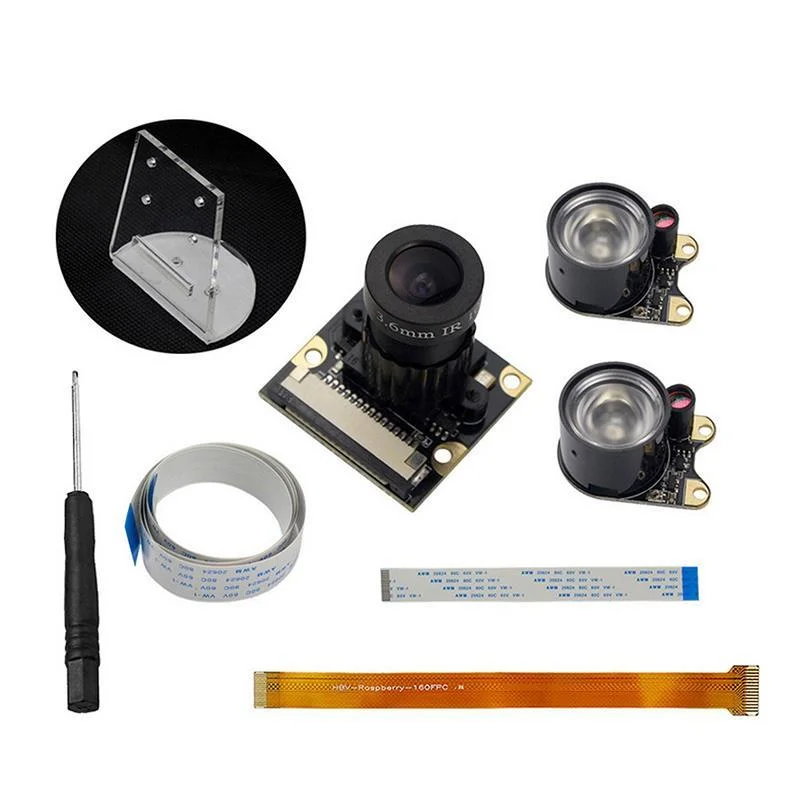 Это компьютеры raspberry pi камера kit, включают функцию фокусного расстояния в ночное время, ИК-датчик светильник, акриловый держатель, кабель для камеры для обоих компьютеры raspberry pi 3 Модель B + / 3 / 2 и компьютеры raspberry pi zero, Вы можете использовать его для Raspberry Pi 3 Model B +/3/2 или Raspberry Pi Zero W/1,3, основываясь только на изменение кабеля камеры. И мы подготовим небольшой винтовой драйвер для более удобной установки камеры. Акриловый держатель специально для этой камеры, который маленький, но полезный.