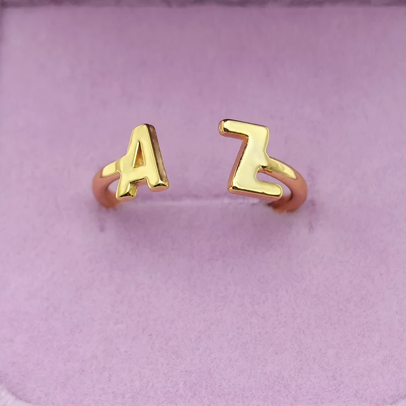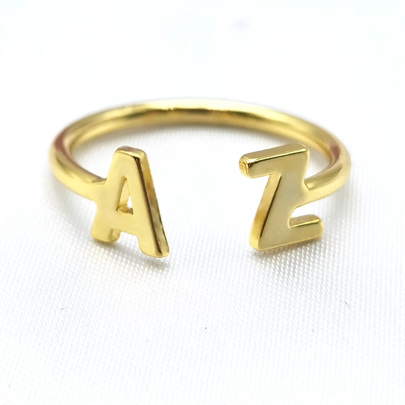 Кольца с двумя A-Z, регулируемый размер, индивидуальный заказ, кольца с буквами
