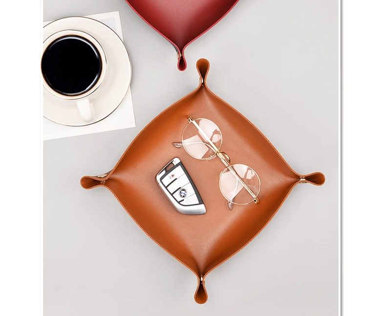 Кожаный Настольный лоток для хранения, квадратный лоток для хранения, европейский стиль, кожаный ящик для ювелирных изделий