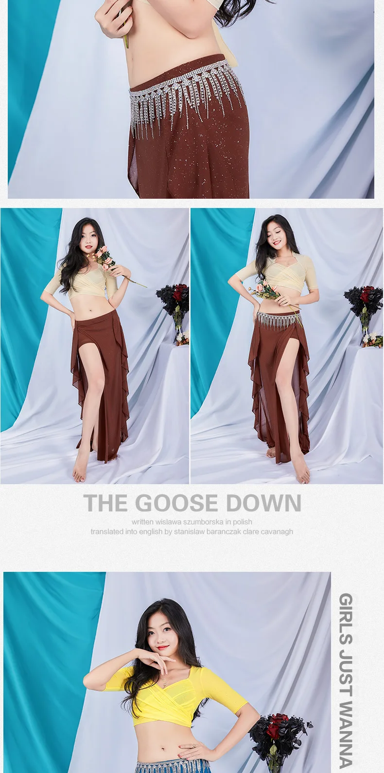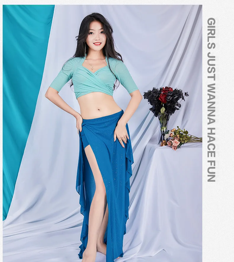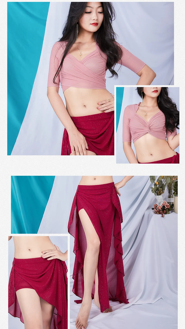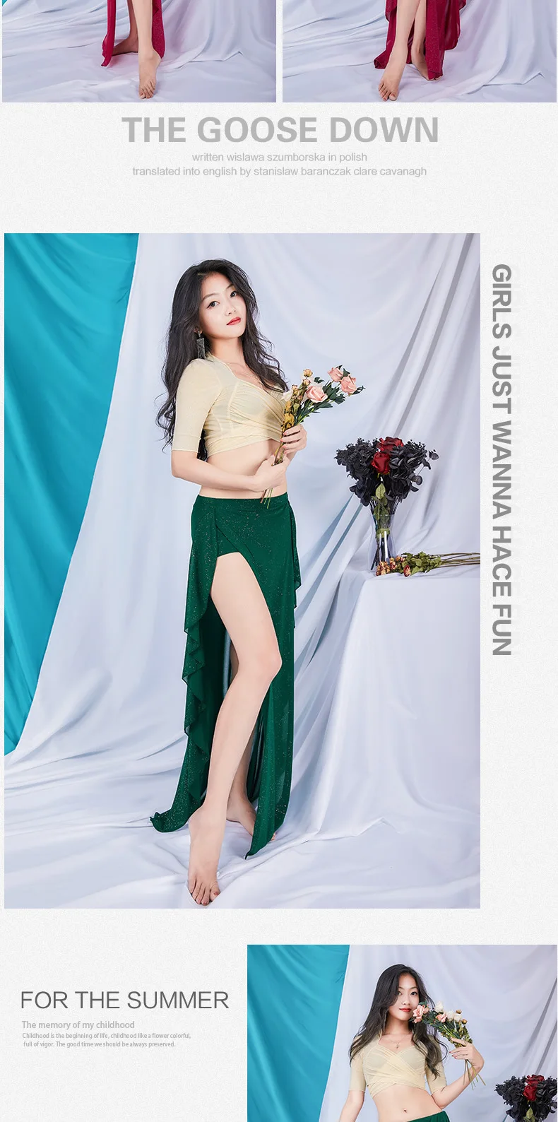 Костюм для танца живота женский, пикантный костюм для танца живота с юбкой, однотонный топ для костюм с длинный юбкой, аксессуары для танцев