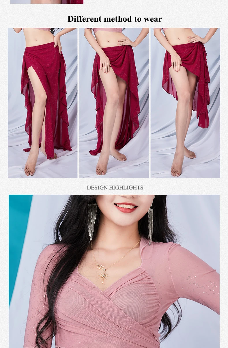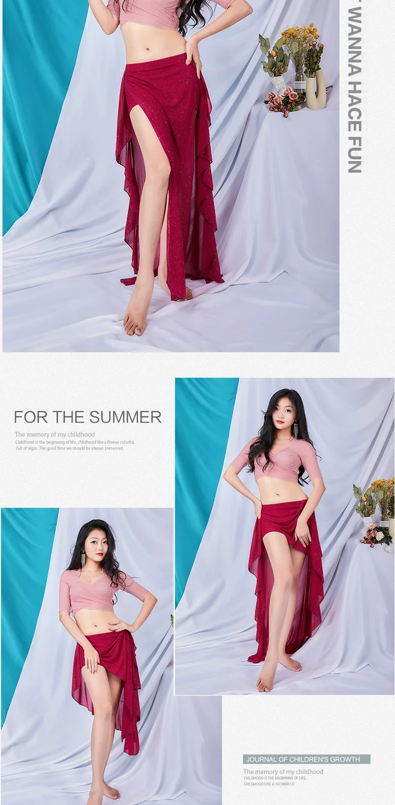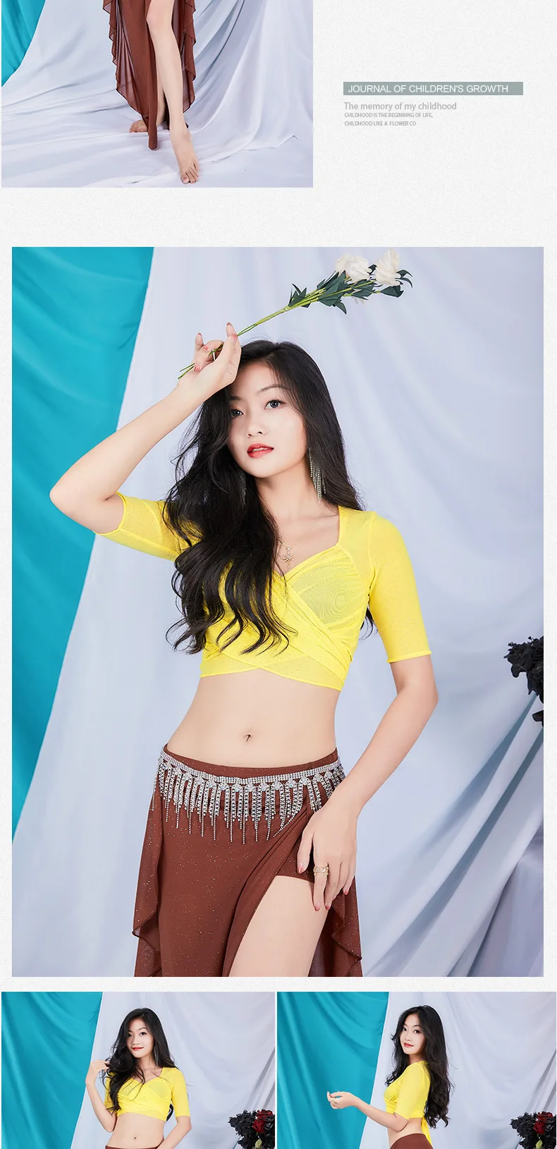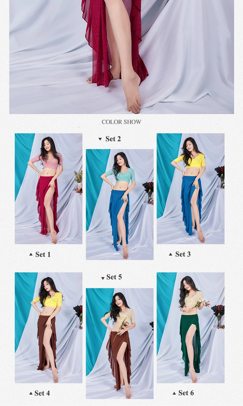 Костюм для танца живота женский, пикантный костюм для танца живота с юбкой, однотонный топ для костюм с длинный юбкой, аксессуары для танцев