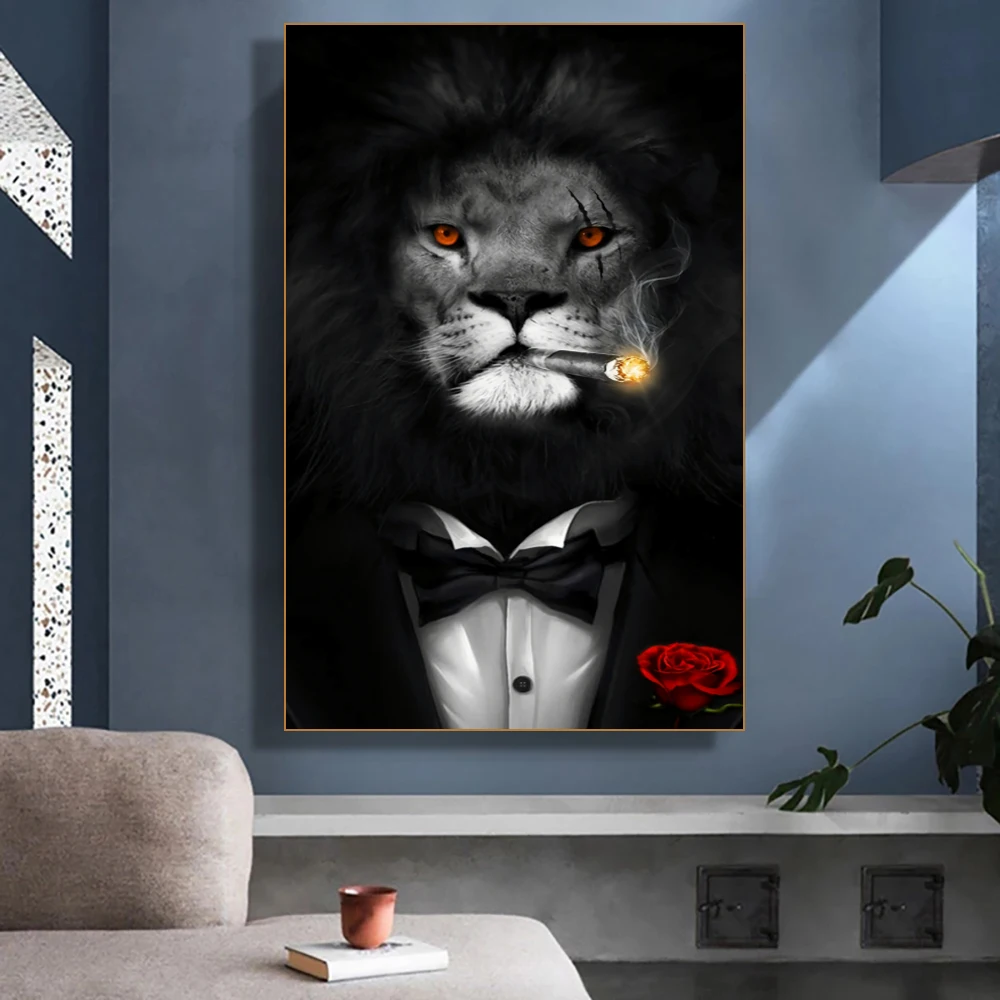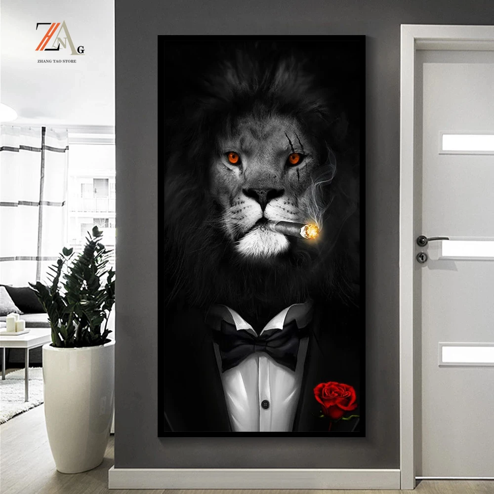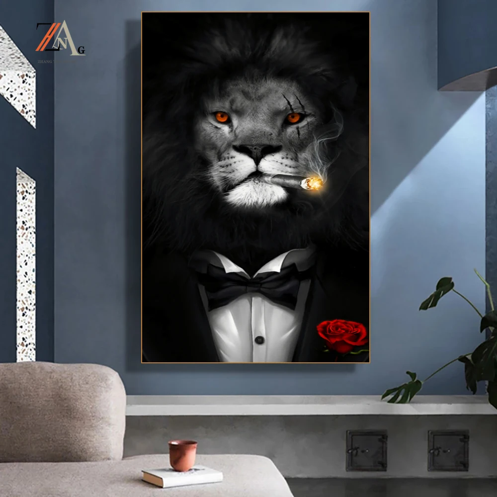 Черный дикий лев в костюме, холст, художественные плакаты и принты,...