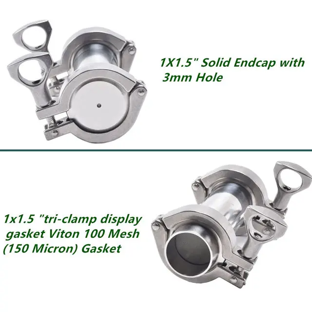 1x1,5 "твердый Торцевая крышка с 3 мм отверстием2 стандартных зажима давленияТрубка из нержавеющей стали 304-1 шт.1x1,5 "Наконечник1x1,5» трёхзажимного хомута дисплей/epdm/100 сетки (150 мкм) прокладка1xViton trip-clamp 1,5 прокладка