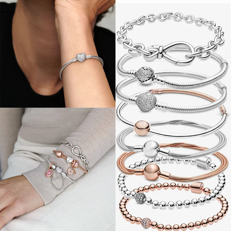 Высококачественный аутентичный Серебряный женский браслет-Шарм в ев...