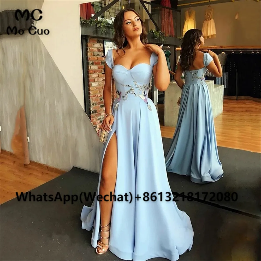 Женское длинное вечернее платье, голубое плиссированное платье-трапеция с бисером и высоким разрезом, платье для выпускного вечера, 2021
