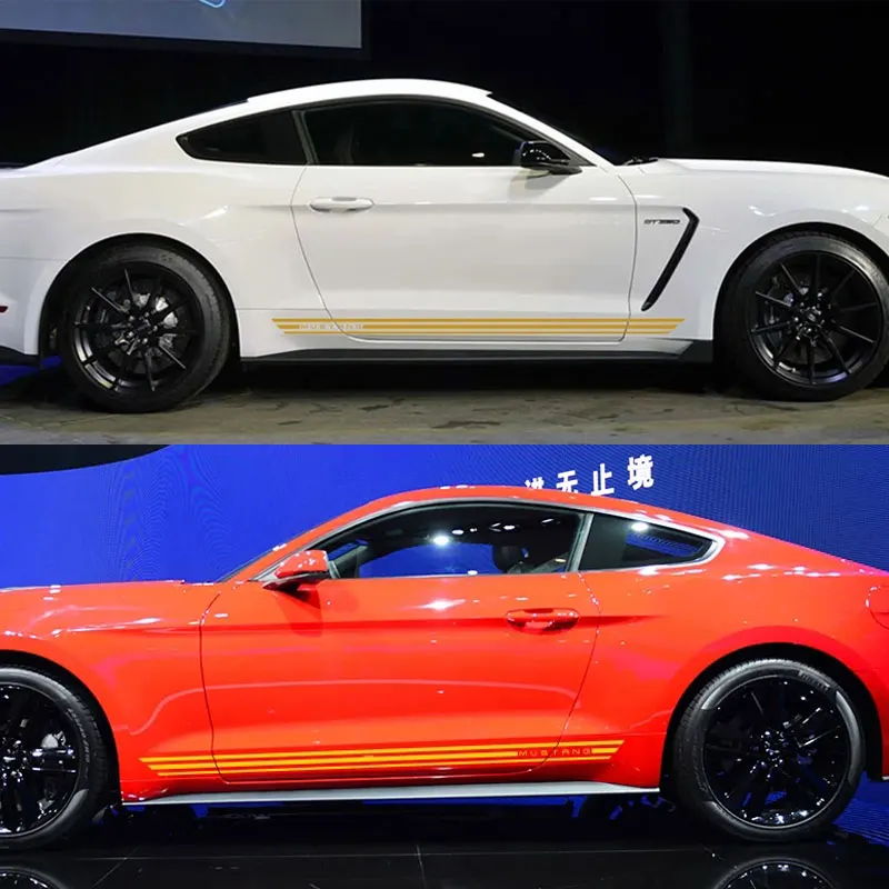 2 шт. автомобильный боковой двери юбки полоски наклейки для Ford Mustang Авто кузова Декор спортивные Графика виниловой пленки наклейки аксессуары для автомобиля