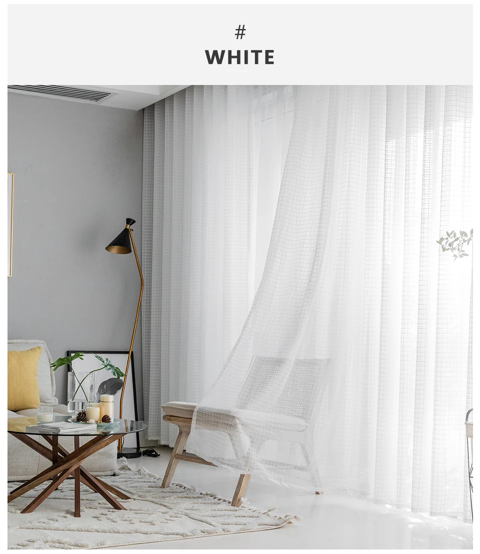 Однотонные белые тюлевые прозрачные шторы LISM для гостиной, декора...