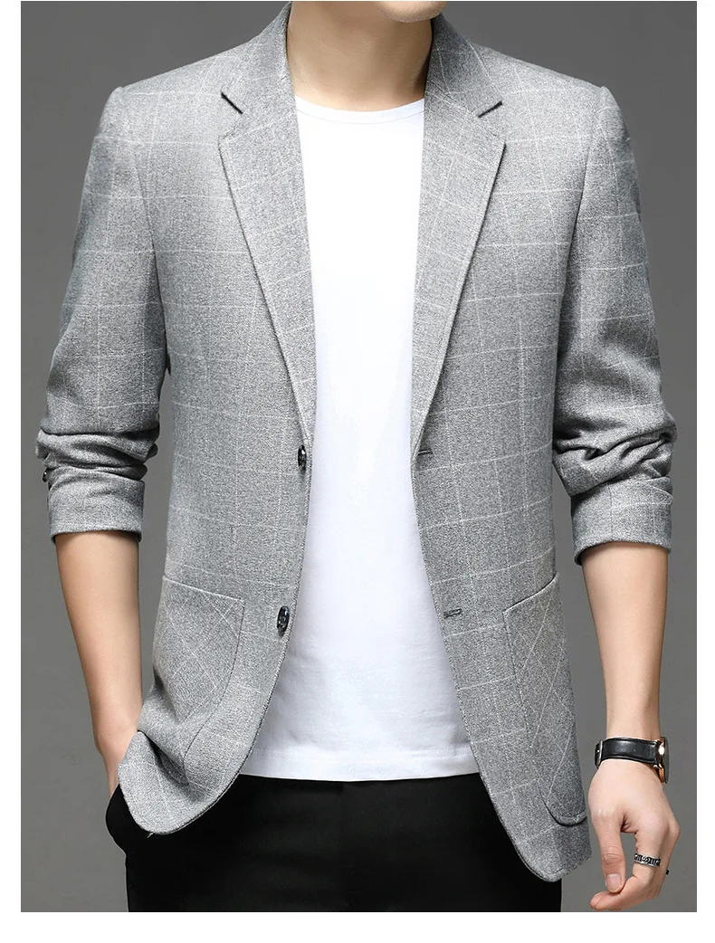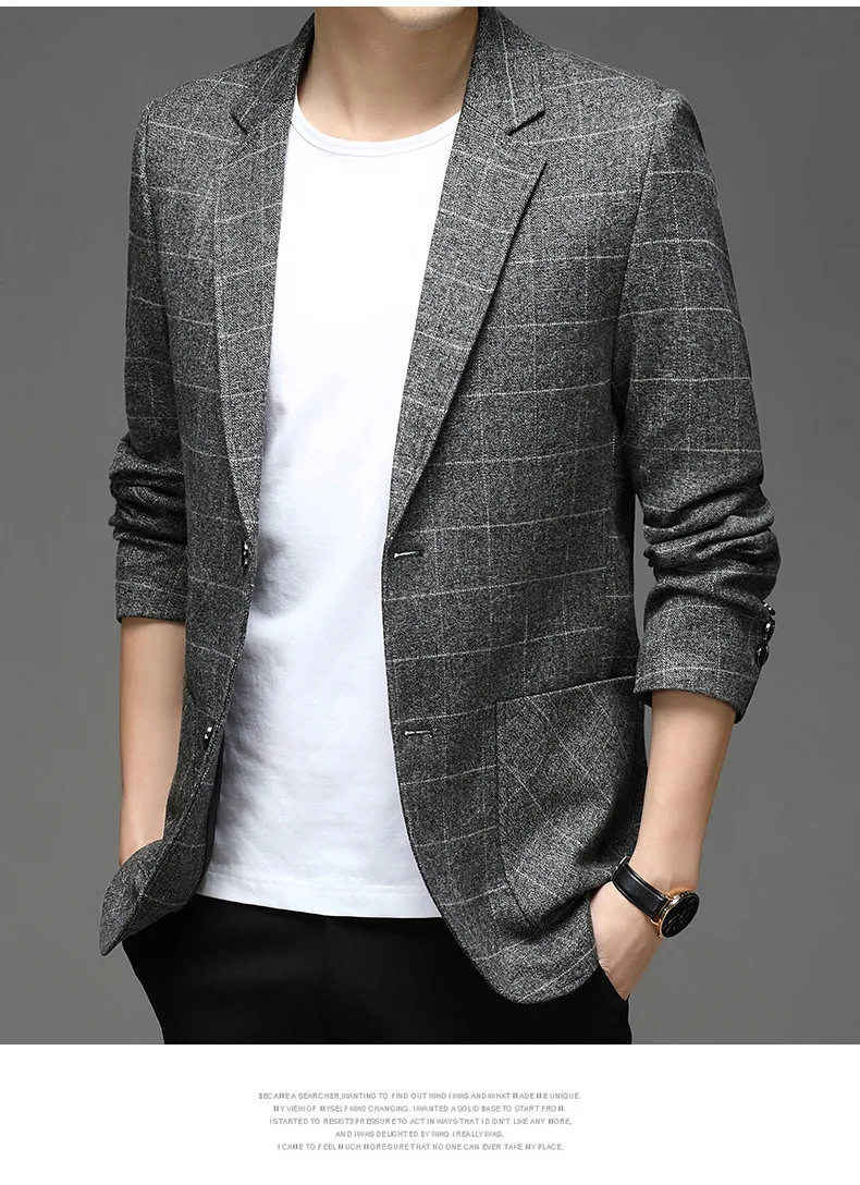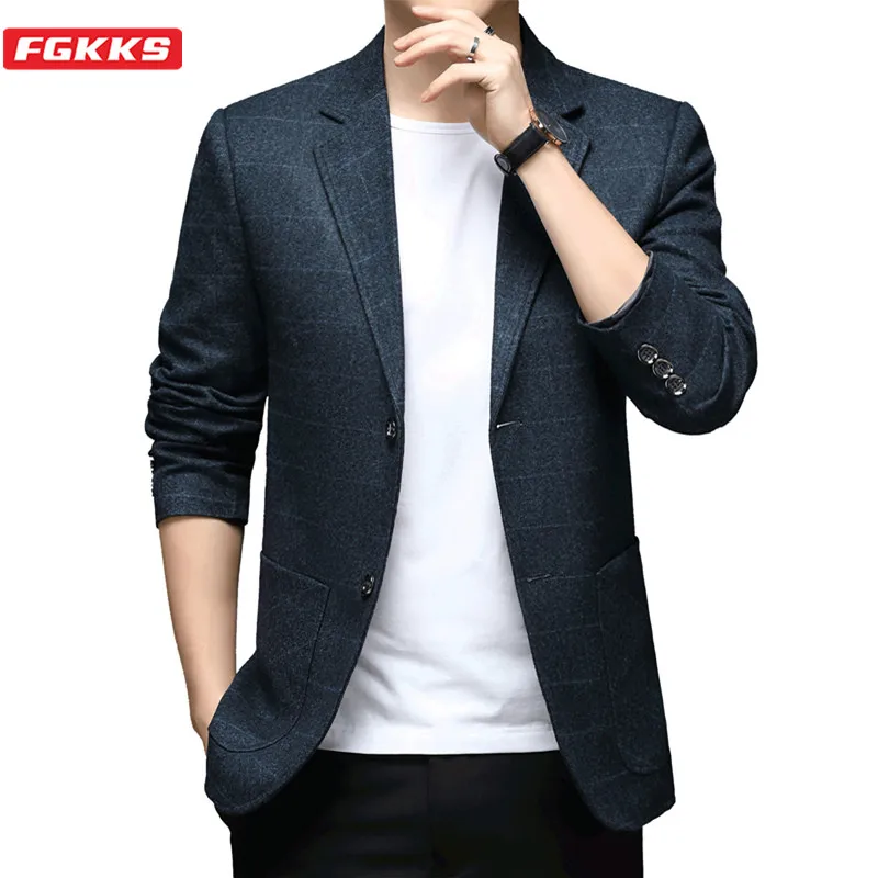 FGKKS мужской деловой Повседневный пиджак, новинка 2021, мужской высококачественный модный Блейзер, приталенный клетчатый пиджак, мужской пиджак