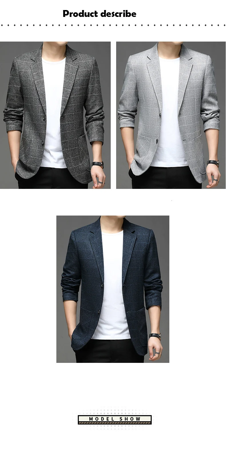 Мужской повседневный блейзер в клетку, деловой приталенный одноборт...