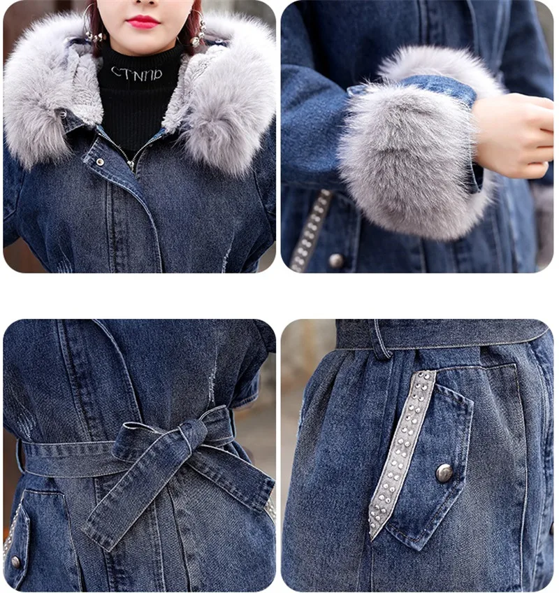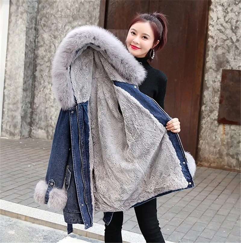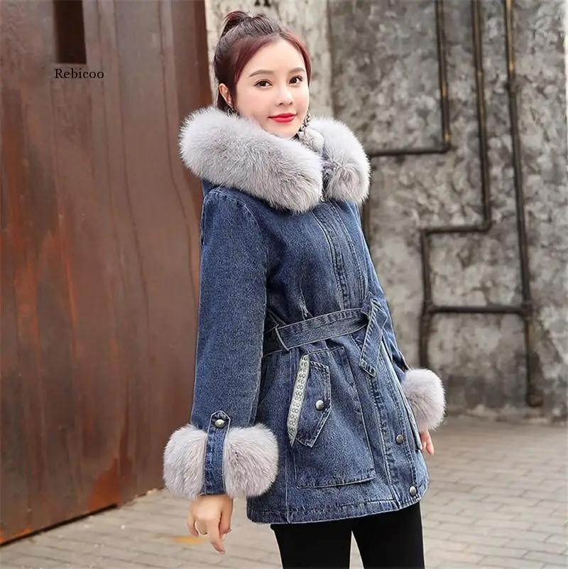 Женская джинсовая куртка FNOCE, зимняя утепленная куртка с меховым ...
