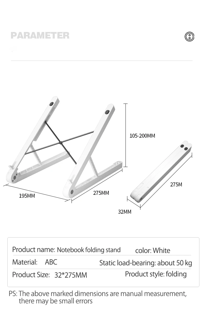 Горячая Распродажа, легкая охлаждающая подставка для ноутбука, пластиковая вертикальная подставка для ноутбука, складная подставка для планшета, кронштейн для ноутбука, держатель для MacBookОсобенности:1. Легкий, удобный и простой в хранении, стабильный и не трясется, полый дизайн рассеивания тепла в нижней части.2. В соответствии с их собственной высотой и осанкой сидения, чтобы настроить различные углы, чтобы избавиться от боли в позвоночнике дискомфорта.3. Мягкий силикагель на контактной поверхности предотвращает истирание компьютера. Противоскользящий силикон в нижней части Увеличивает трение и предотвращает перемещение ноутбука в использовании.Описание:Кронштейн можно сложить и хранить, с правой толщиной золота. Светильник тонкий, чтобы носить с собой. Это действительно не занимает места.Характеристики:Материал: АБС-пластикРазмер: 32*275 ммВ комплект входит:1 * подставка для ноутбукаПримечания:1. Из-за разницы между различными мониторами изображение может не отражать фактический цвет изделия. Мы гарантируем, что стиль такой же, как показано на фотографиях.2. Возможны незначительные отклонения в размерах из-за различных измерений вручную.