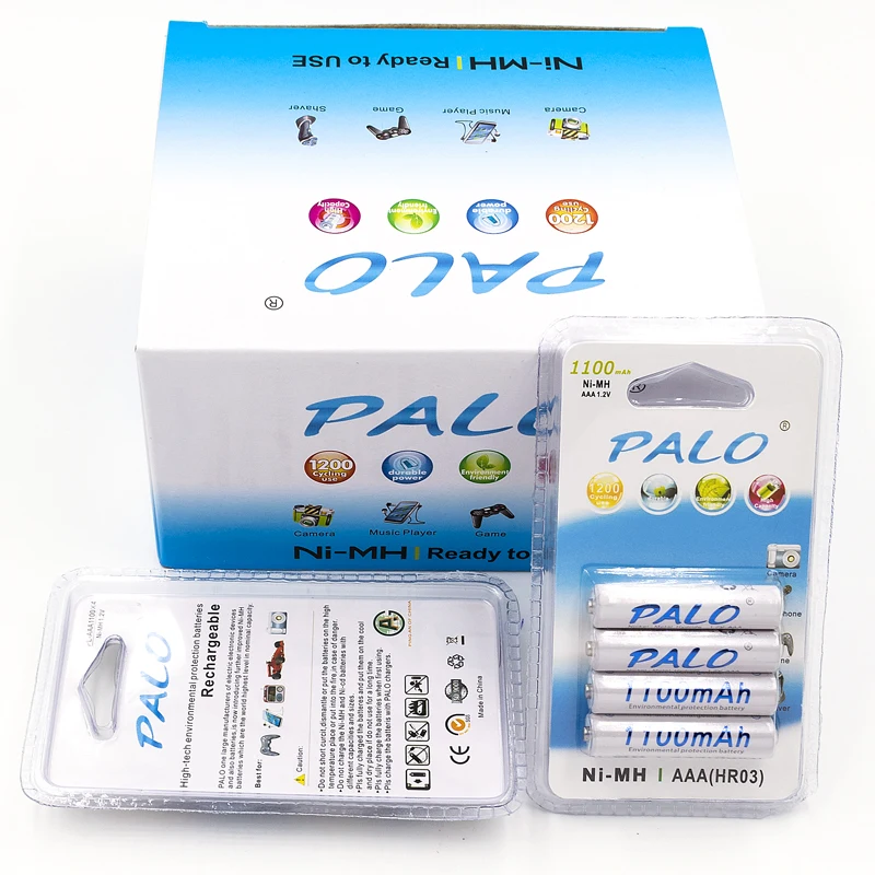 Тип: Ni-MH низкий саморазрядНазвание бренда: PALOРазмер: AAAДиаметр размера * Высота = 10(-0,5) мм * 44(-1,0) ммНоминальное напряжение: 1,2 VТок: 600 мАЕмкость: менее 1100 мАчСертификация: CE, ROHS и т. Д.Упаковка: маленькая коробка, пластиковая посылка и т. д.Цикл перезарядки: 1800 раз