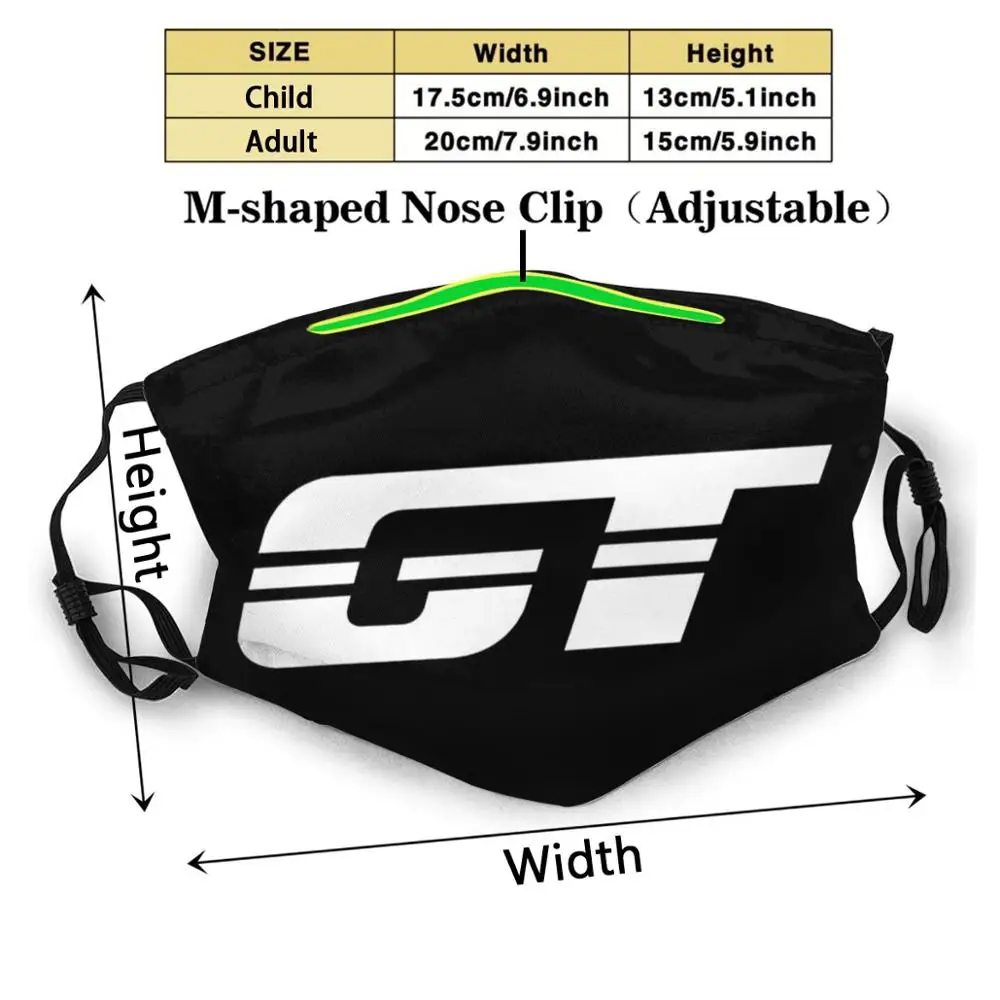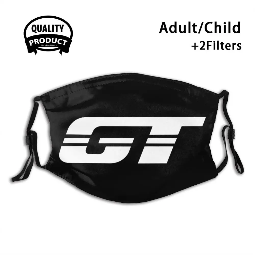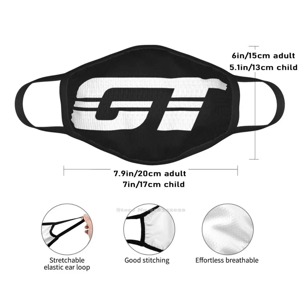 Gt, машина, автомобили, логотип. Белый на черном. Модная модная мягкая маска для рта, внешний логотип, логотипы, знаки, полоски, полоски, черные Gt