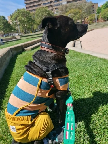 Материал качественный, довольно растягивается, но маленький по размеру. Размер XXL, в описании написано, сундук 66 см и оказывается меньше, чем это. У моей собаки 58 см груди. Я купил его, думая, что он будет свободнее, потому что это очень хорошая модель, и цвет такой же, как на фотографиях в описании, но он был очень плотным, я не знаю, смогу ли вы его использовать, обидно, потому что мне очень понравилось.