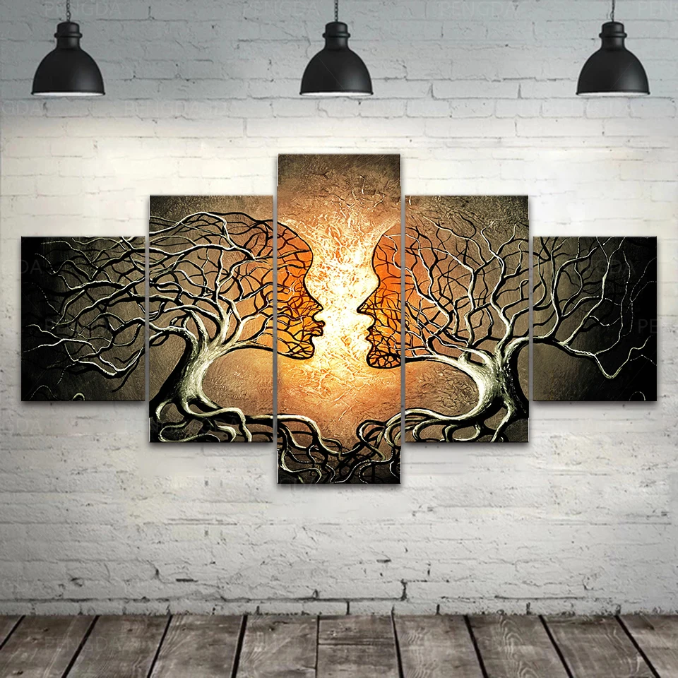 5 шт., настенные картины на холсте, с абстрактным изображением ветвей дерева