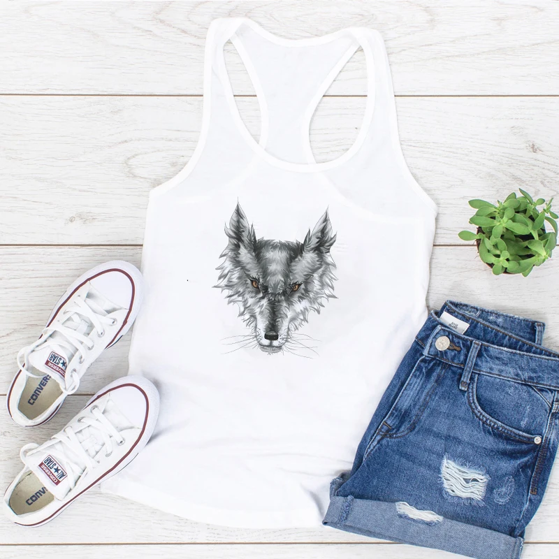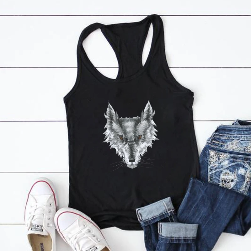 2021 модные волк с тотемным принтом майка для женщин без рукавов Лето жилет Эстетическая Женский Топ Плюс размер Ropa Mujer yk2