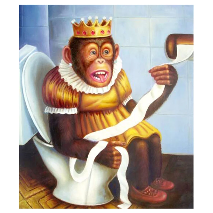 Полноразмернаякруглая вышивка 5D сделай сам, мультфильм обезьяна на туалете, 3D вышивка крестиком, алмазная живопись, домашний декор, подарок FC480