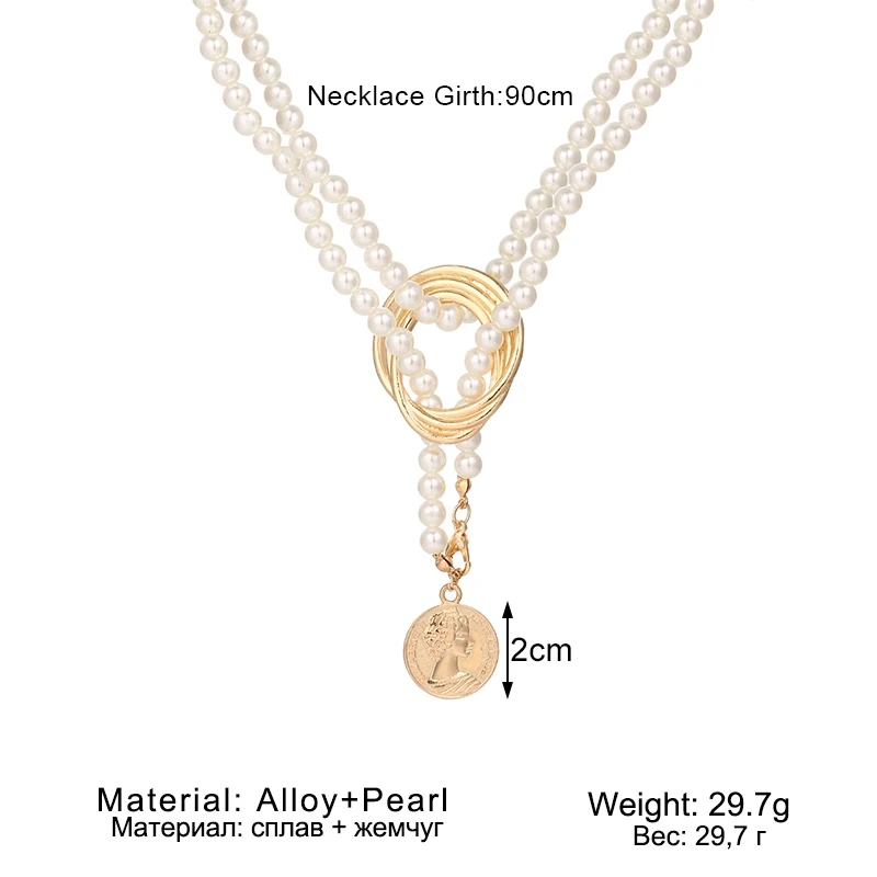 Винтажное ожерелье на шее с золотой головкой, жемчужная цепочка для...
