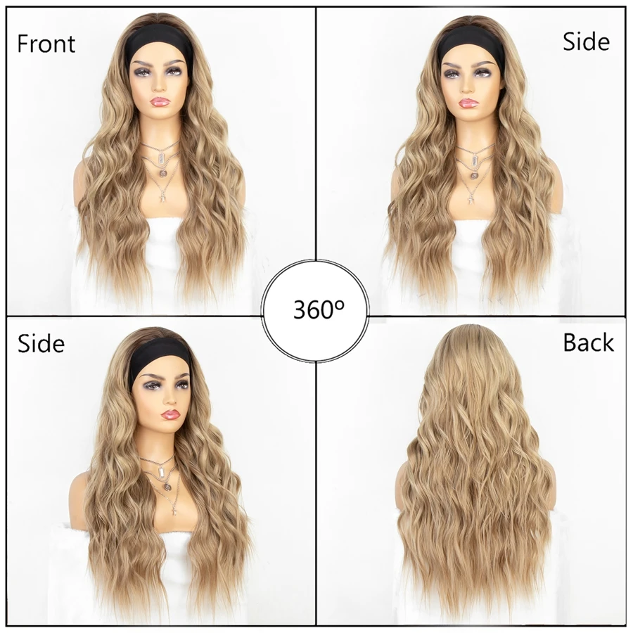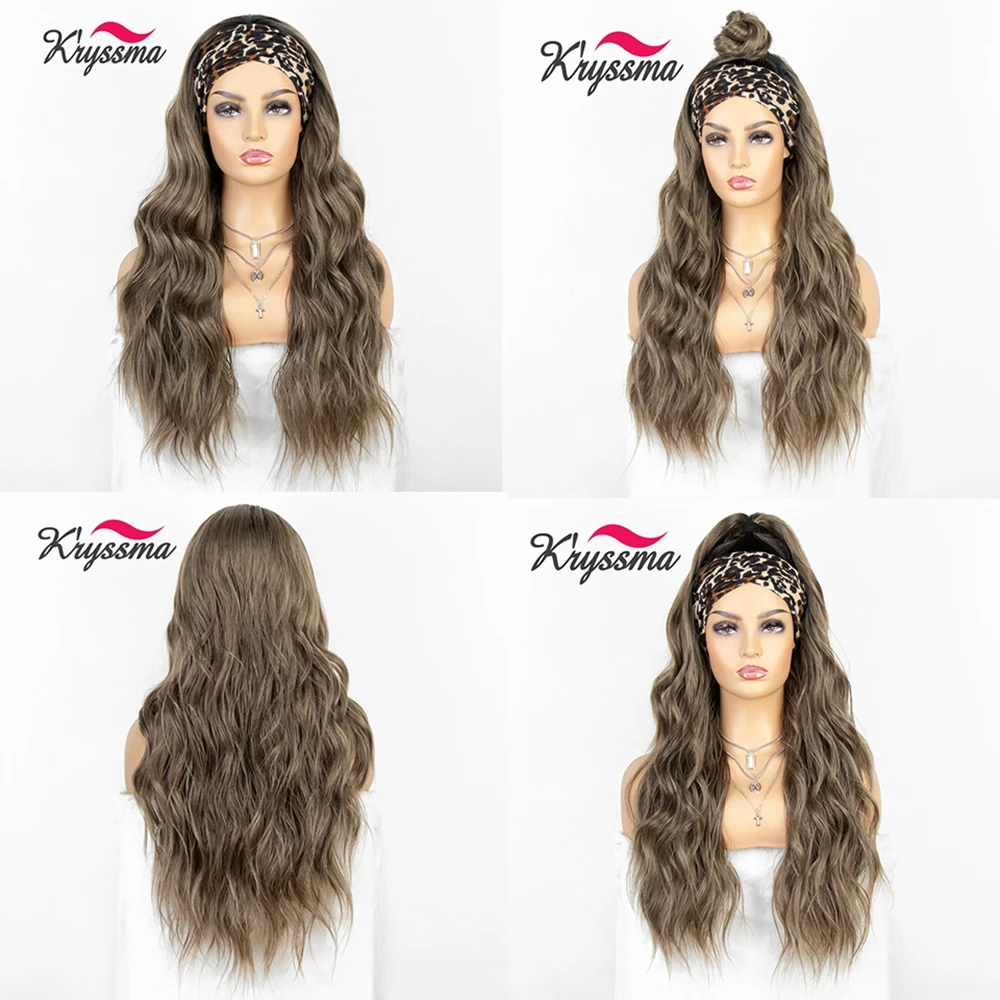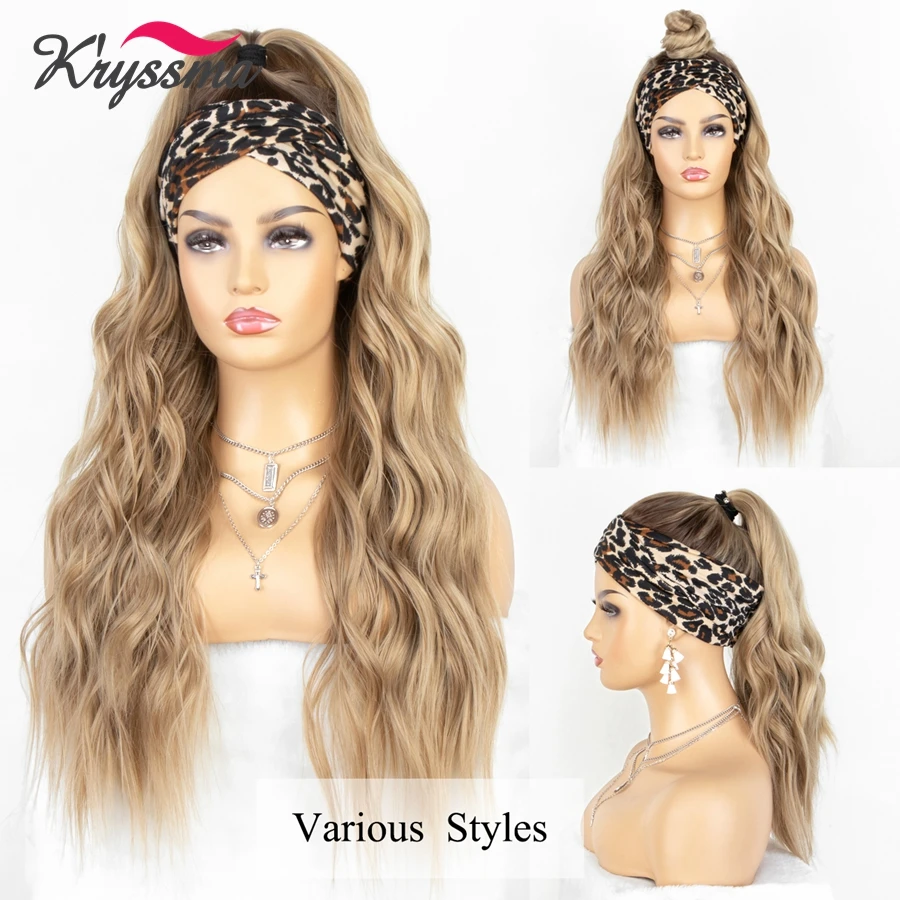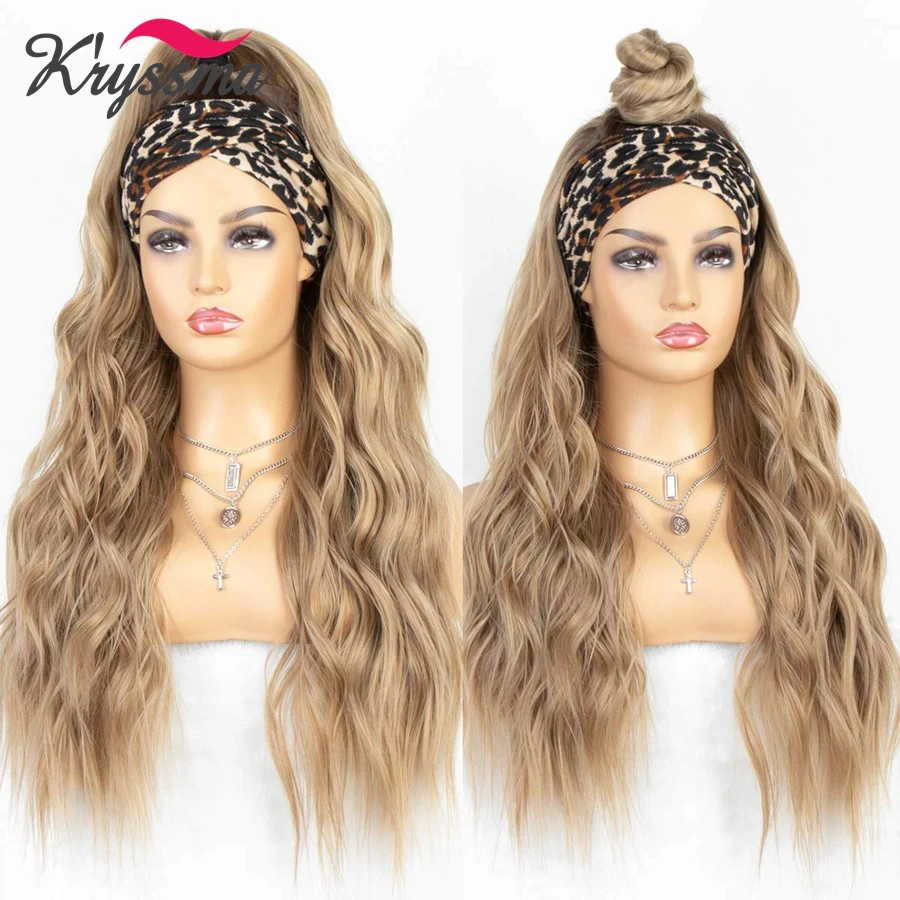 Парик kryssma для женщин, длинные волнистые волосы, повязка на голову из натуральных золотых блонд, синтетические парики с эффектом омбре, волнистые парик с головной повязкой, термостойкие волосы