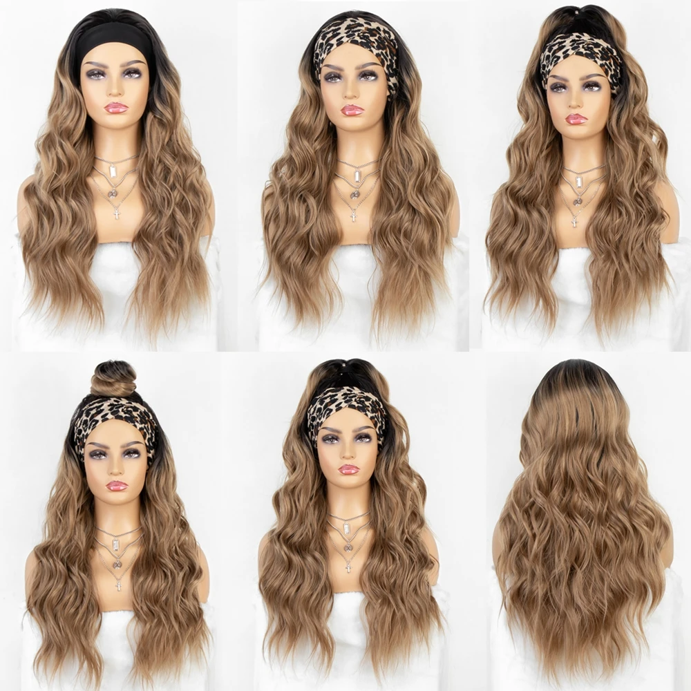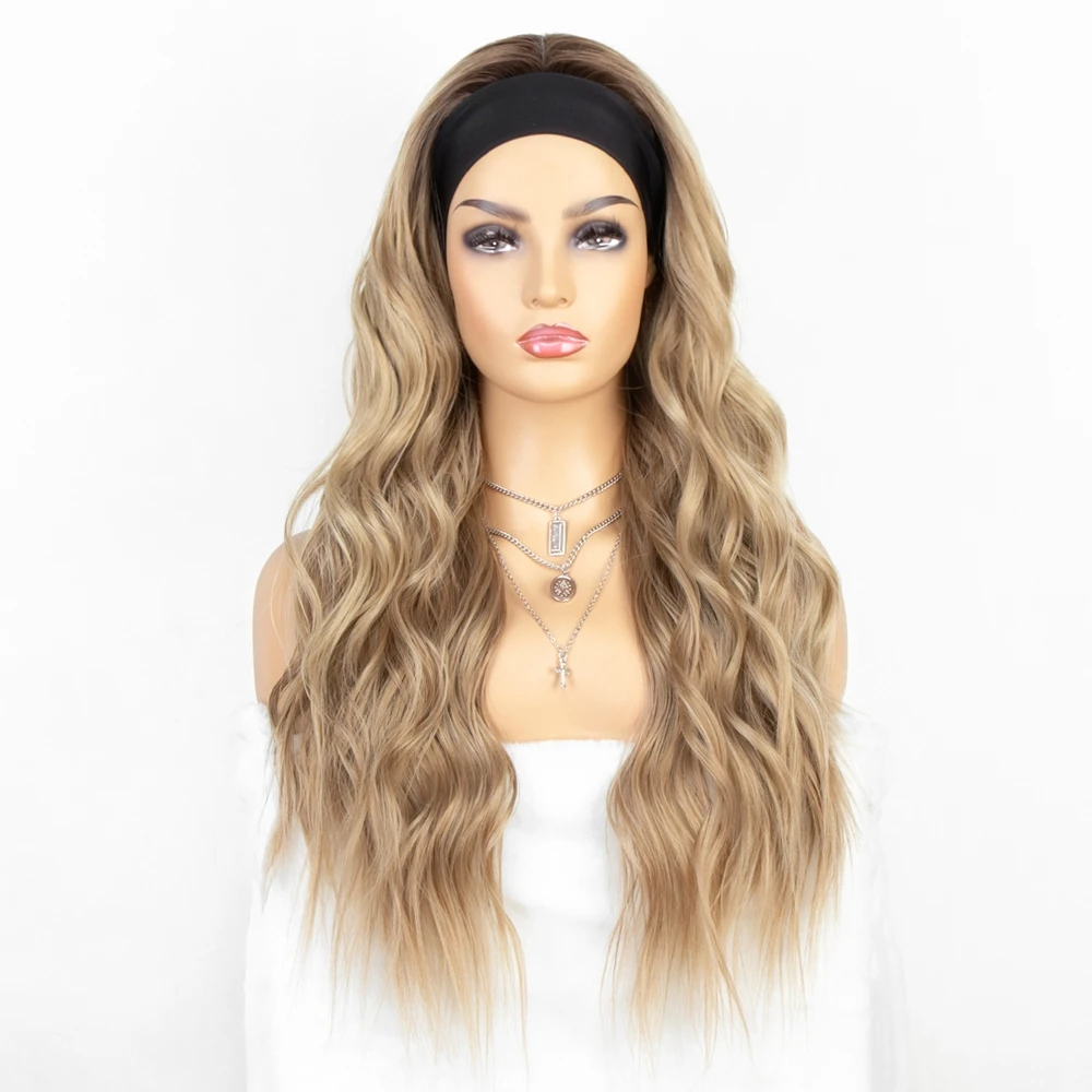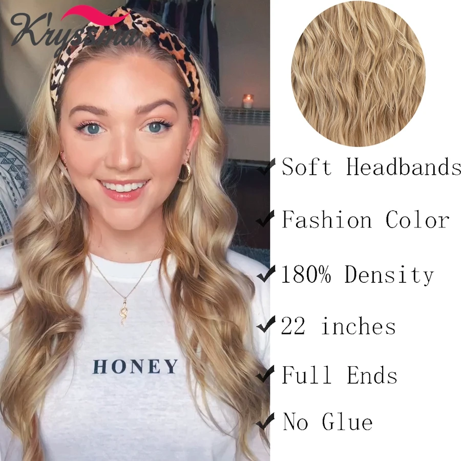 Парик kryssma для женщин, длинные волнистые волосы, повязка на голову из натуральных золотых блонд, синтетические парики с эффектом омбре, волнистые парик с головной повязкой, термостойкие волосы