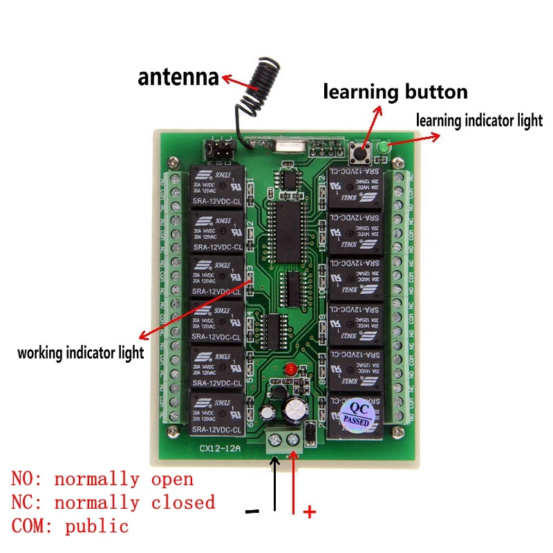 Нажмите клавишу на пульте дистанционного управления, чтобы включить соответствующее реле, и нажмите другую клавишу на пульте дистанционного управления, чтобы выключить реле.