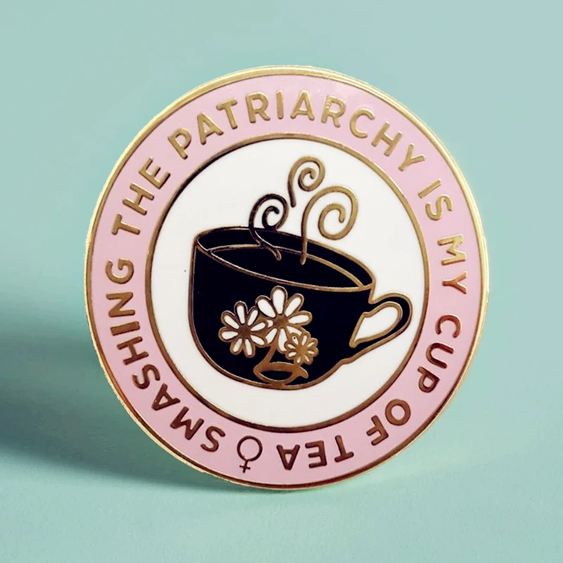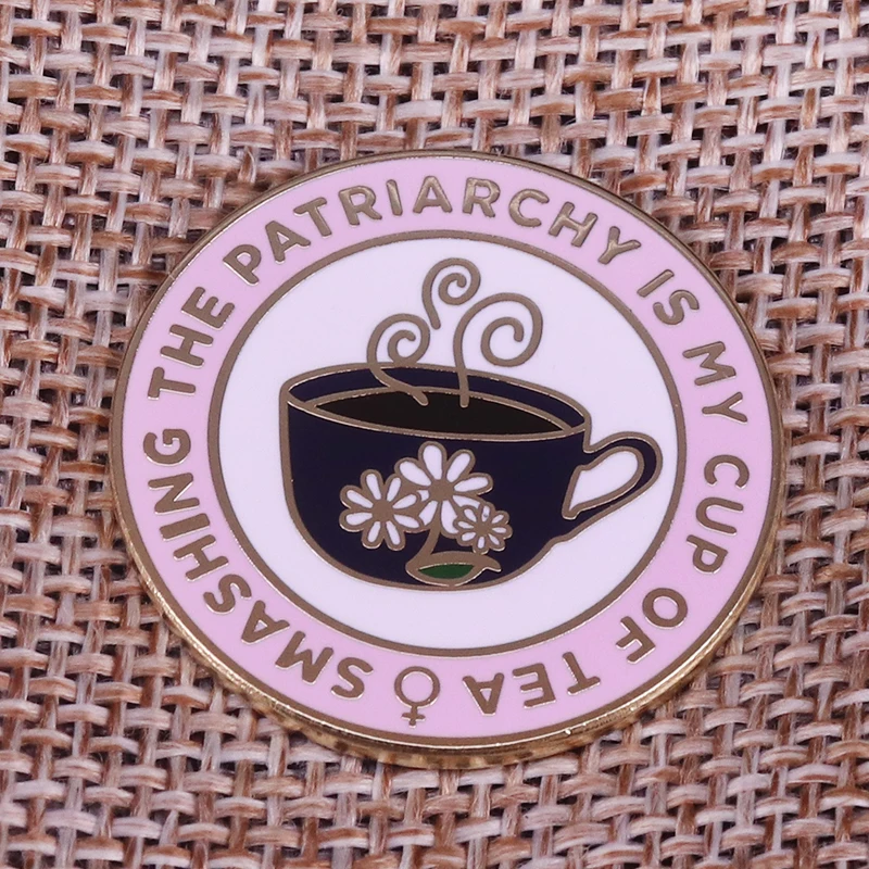 Брошь Феминистская Smashing The Patriarchy My Cup Of Tea, металличе...