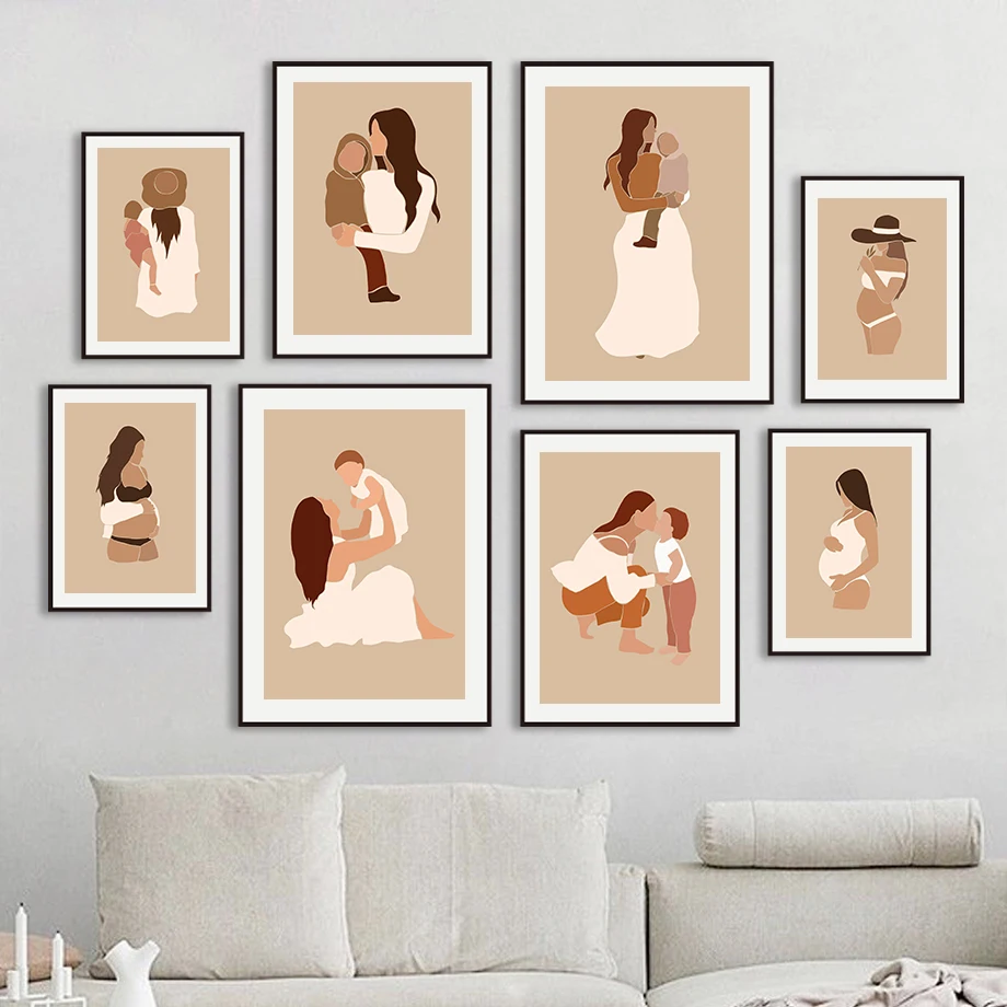 Настенные картины для беременных мам и детей, картины на холсте, скандинавские плакаты и принты для мамы и ребенка, настенные картины для детской комнаты, украшение для спальни