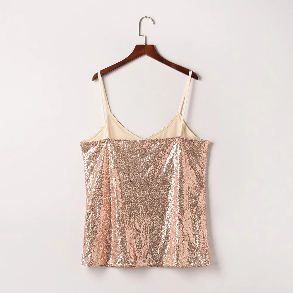 Женские вечерние майки без рукавов с v-образным вырезом и блестками