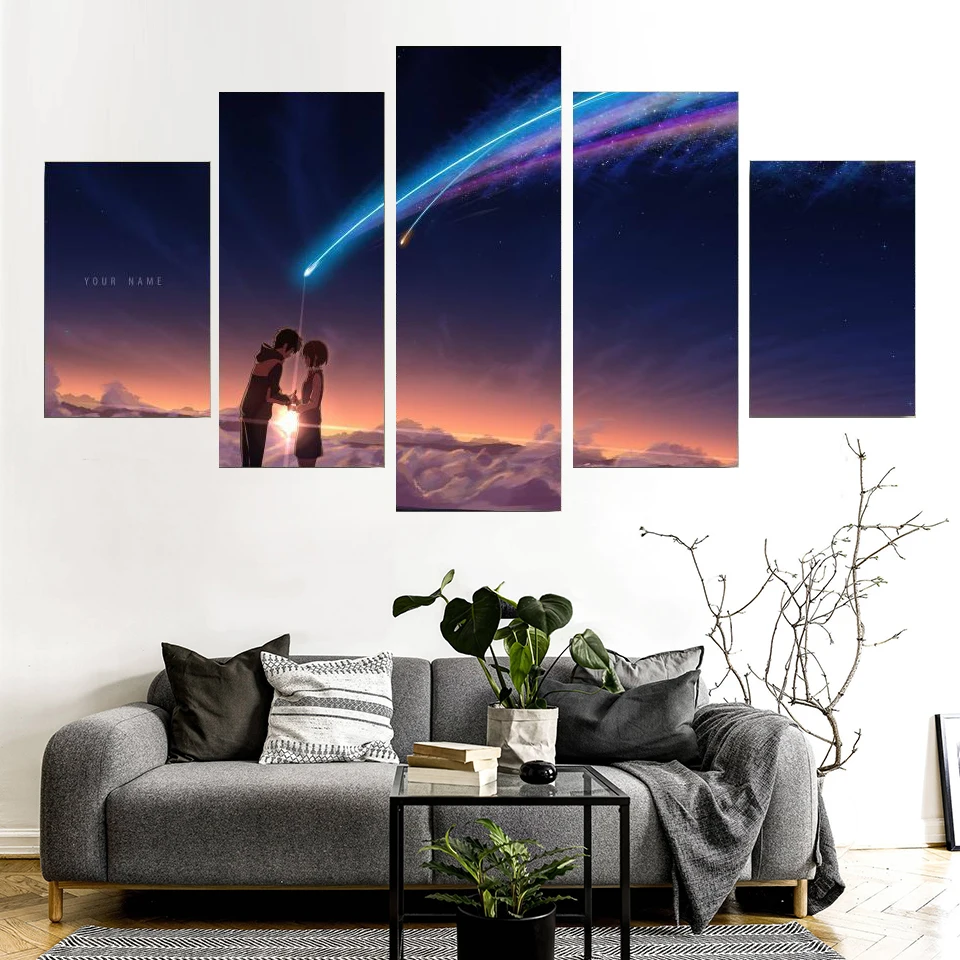 5 панелей, настенное искусство, Ваше имя (Kimi no Na wa), картины, искусство, картины, картины, постер с вашим именем, пленка, картина, рамка, художественное оформление