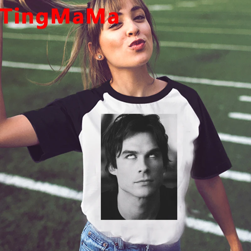 Женская футболка с дневниками вампира, летняя белая футболка, Повсе...