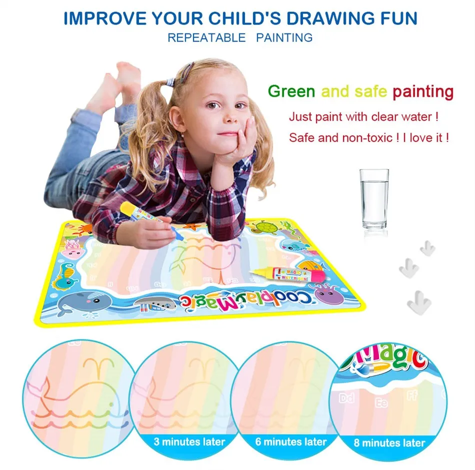 Детский волшебный водный коврик для рисования и 2 ручки, игрушки, многоразовая доска для раскрашивания, набор для рисования, обучающая игрушка для детей